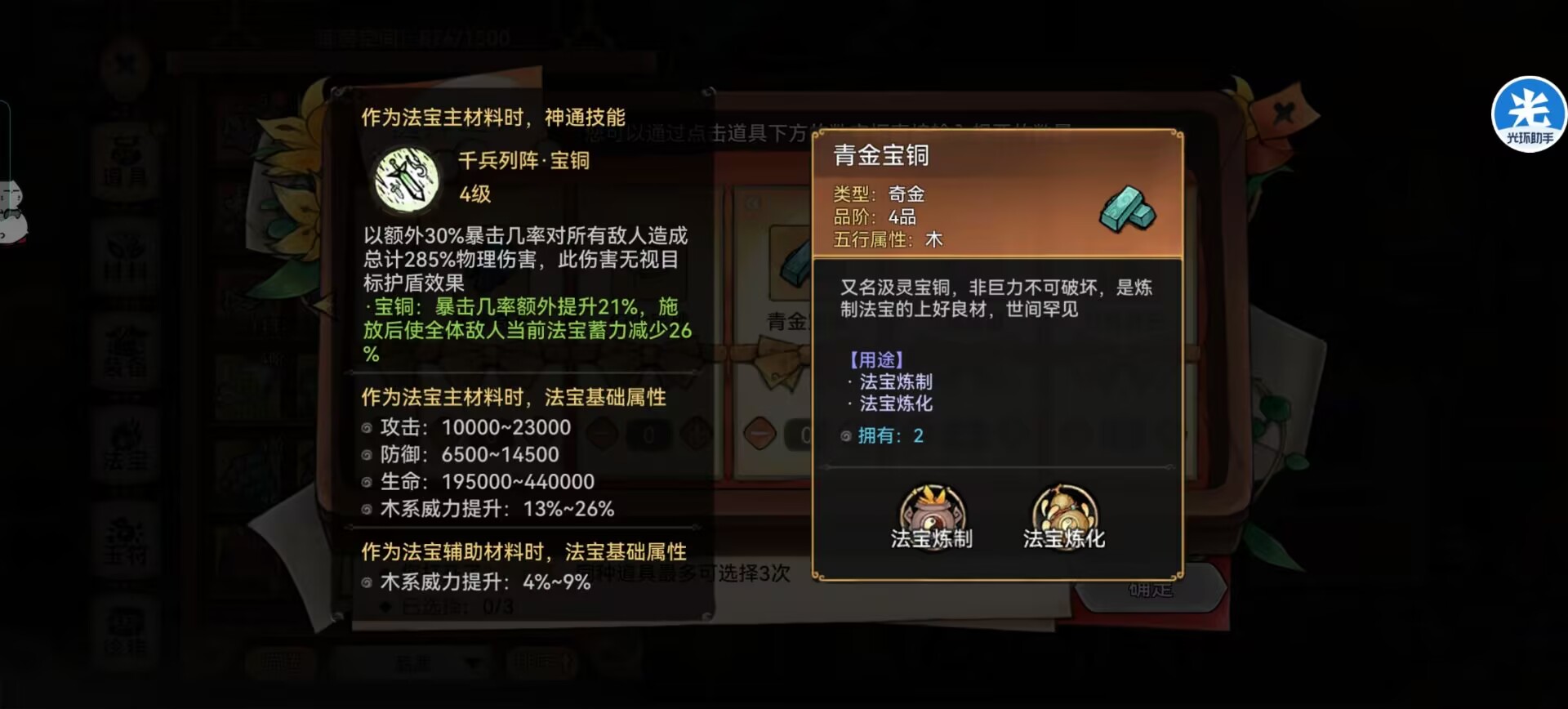 2:有玩家会问:狮子,现在四阶法宝材料需求缺口那么大,材料怎么放比较合适?目前制作四阶法宝有两种思路: