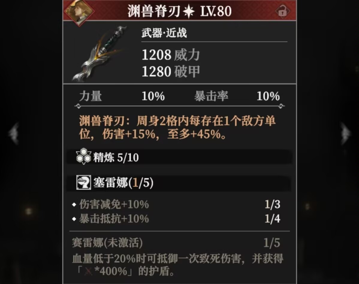 套装属性:①格挡率10%。②生命+10%,