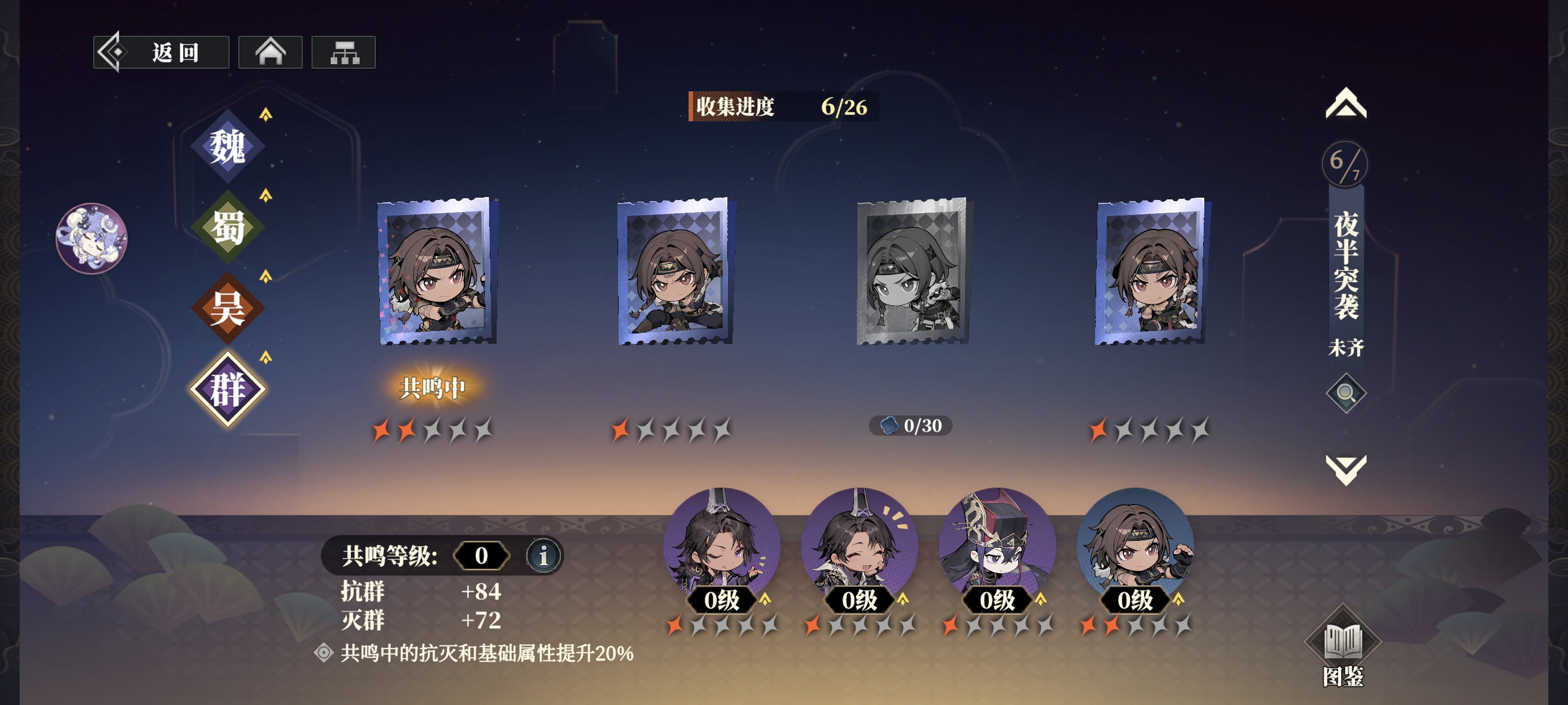 星级属性为幻谷人物本阵营的抗灭属性,如下图中陆逊增加【抗吴】,抗灭属性非常重要,能极大的影响攻防双方的伤害结果!