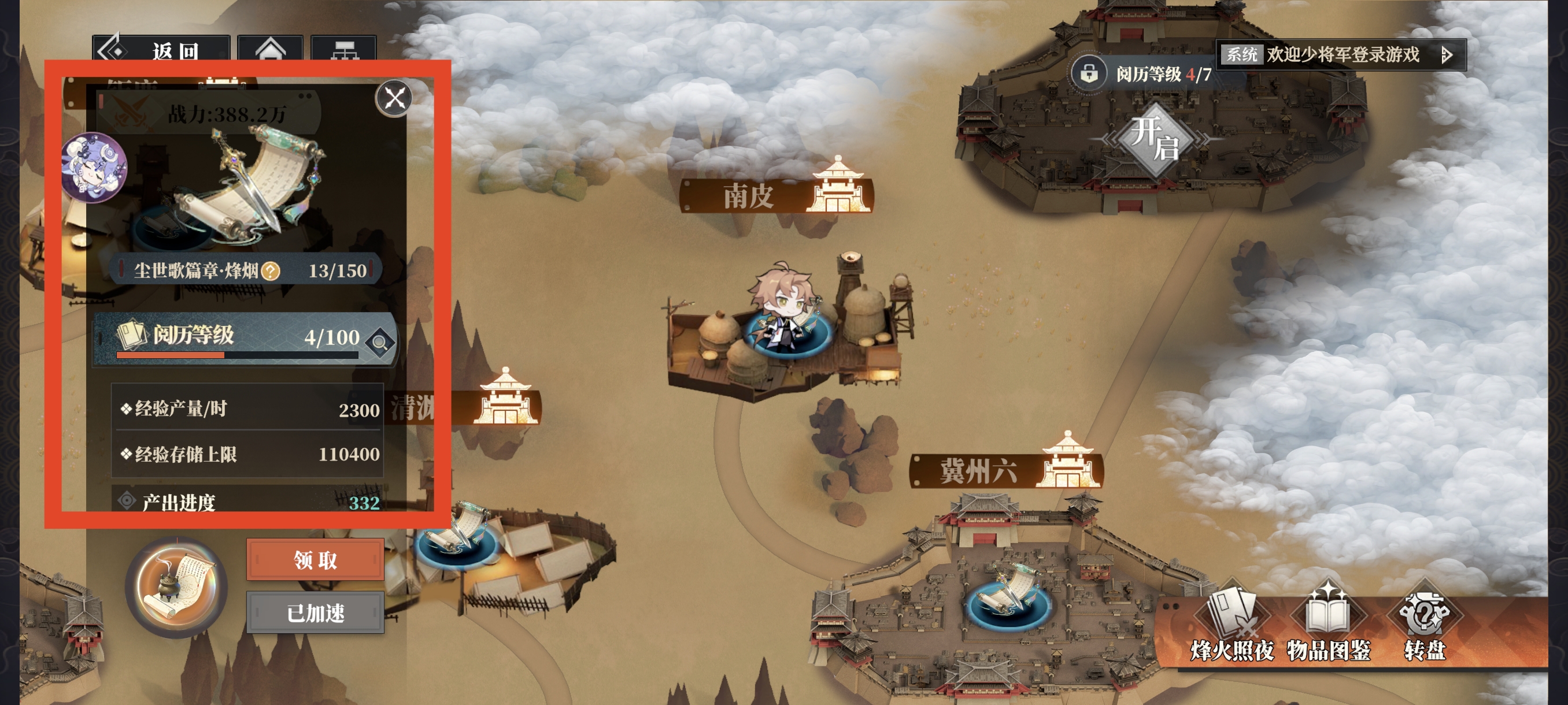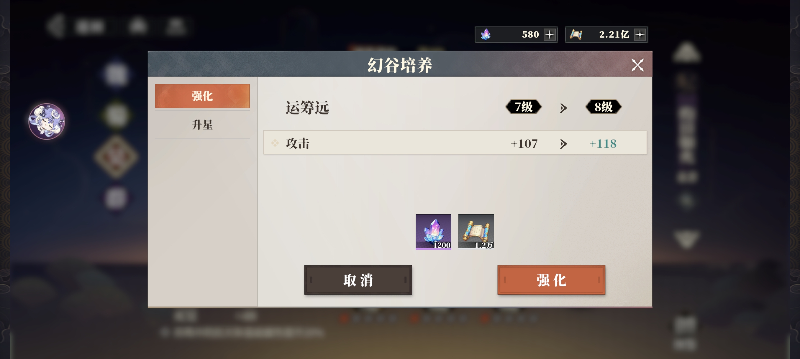 基础属性为攻、防、血百分比和数值,可通过消耗养成经验升级,优先升级百分比属性的幻谷。