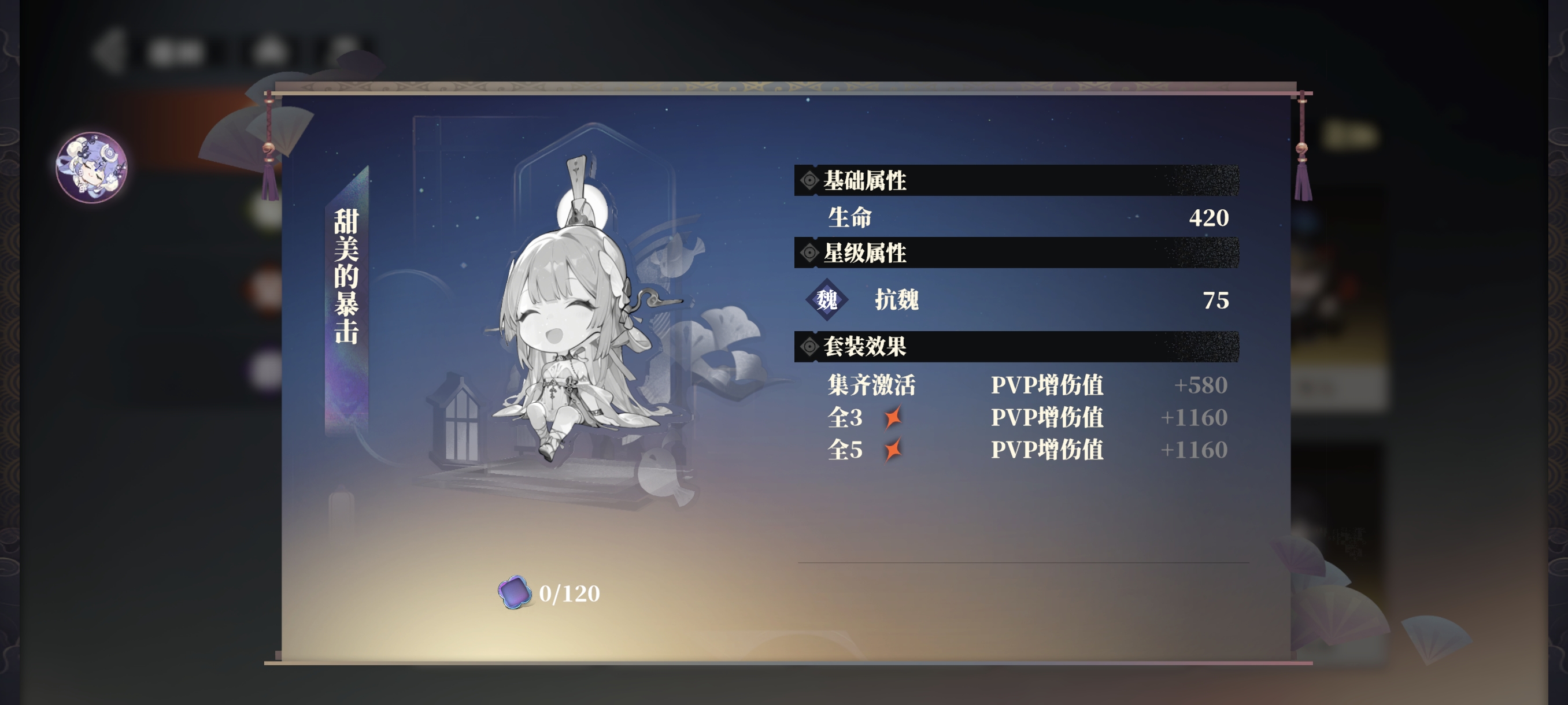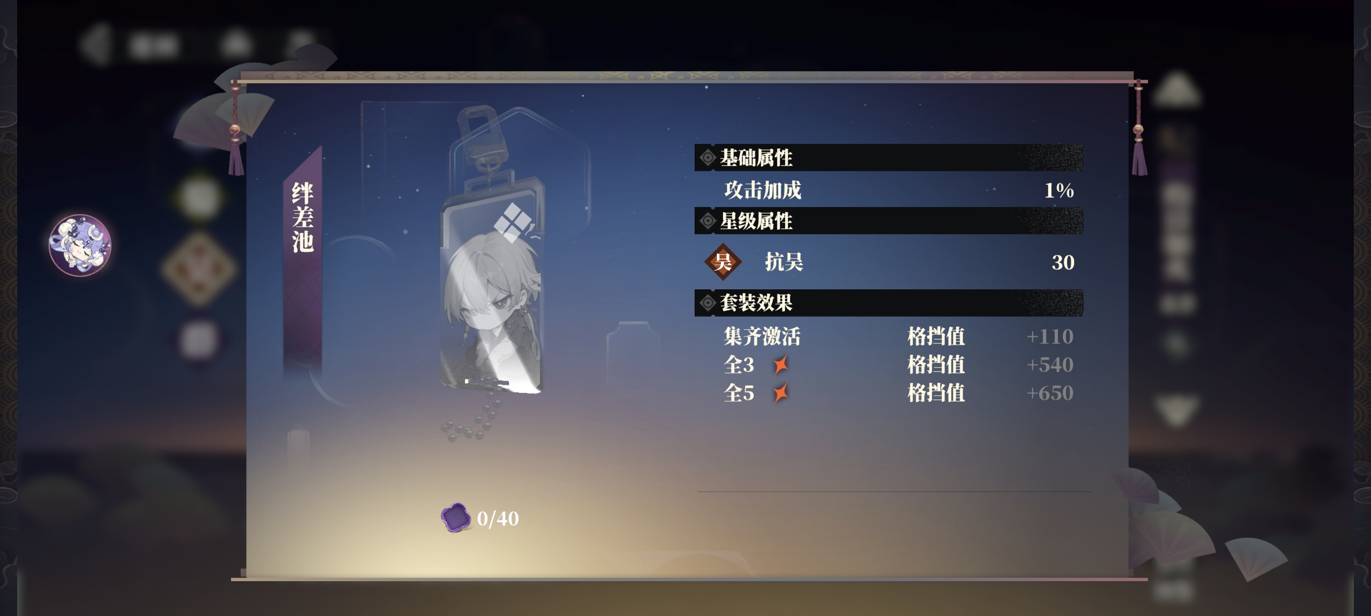 套装效果需要集齐该人物的所有幻谷方可解锁,可获得各种稀有属性加成,如暴击、抗暴、格挡、PVP增减伤等。