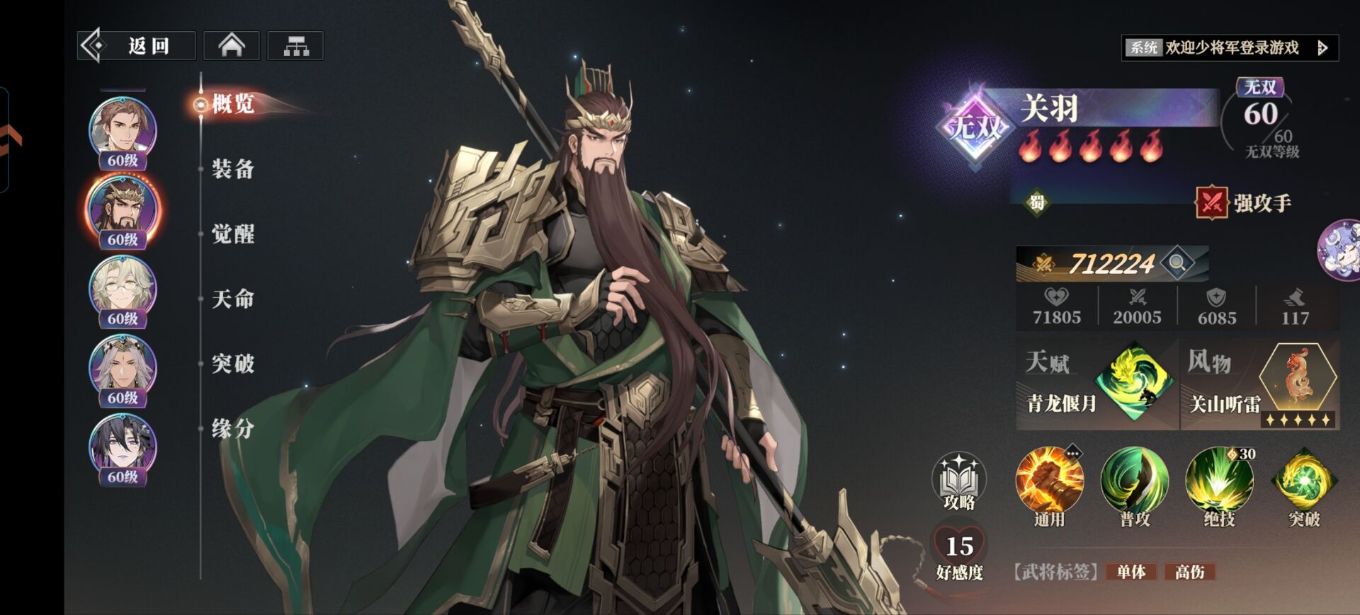 我们的【关羽】大招=30点战意,这两个武将都是战意消耗大户!
