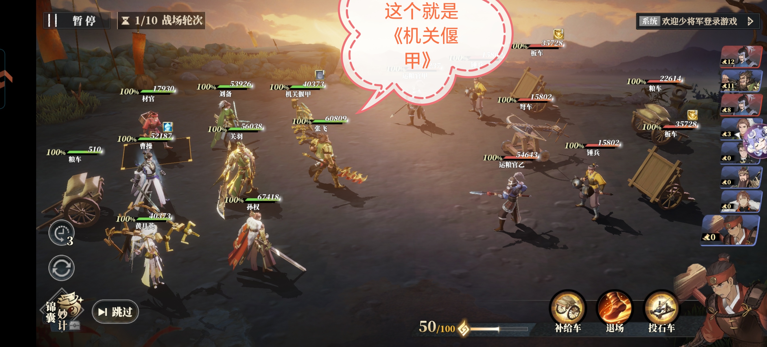 那么有玩家会问了:狮子,黄月英这个《机关偃甲》的作用是什么呢?答:主要作用就是帮我们回【战意】可以极大缓解我们战意需求的问题。