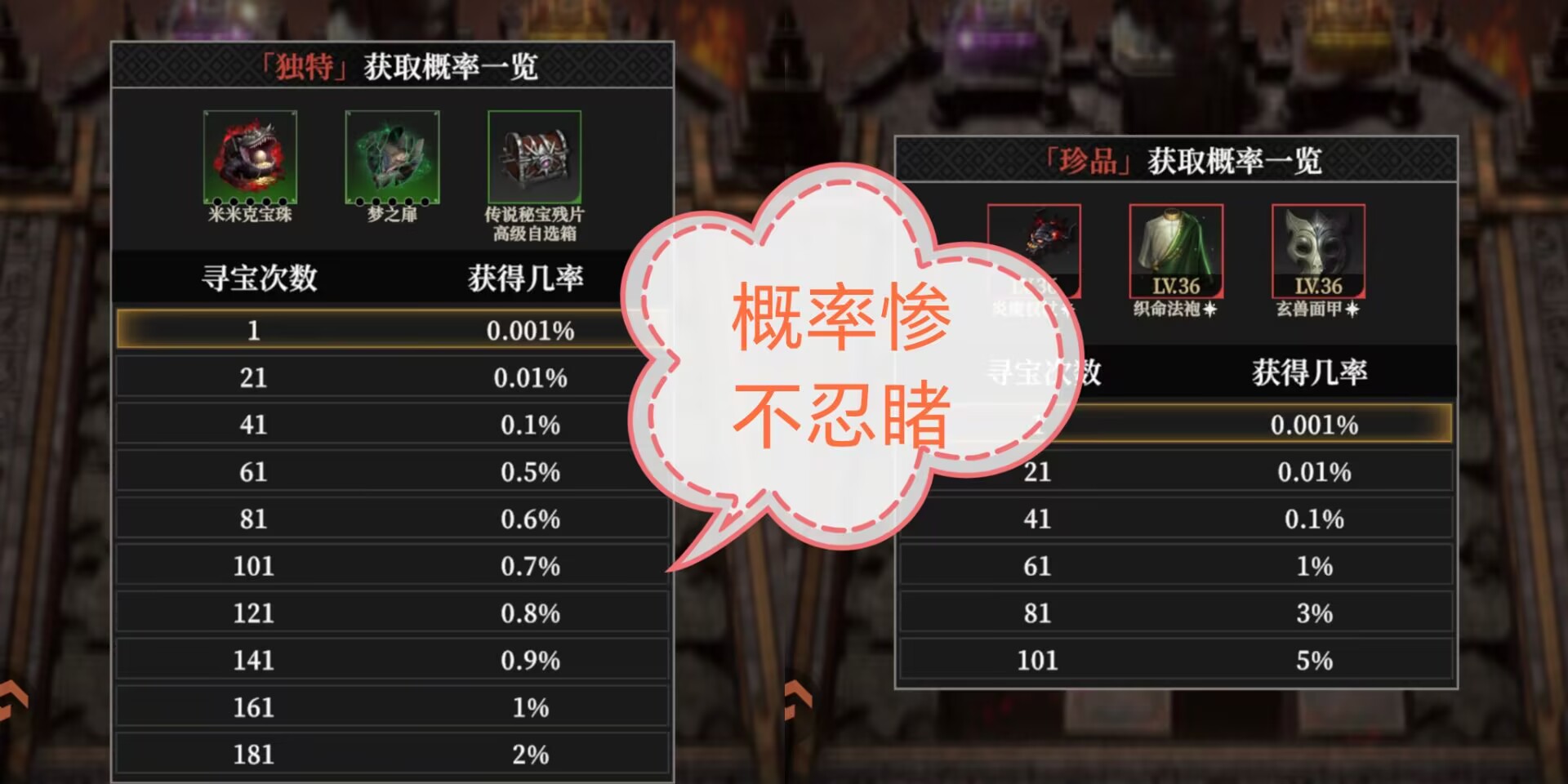 ⭐狮子让大家多囤【探宝铲】的具体原因如下:①第一点:【独特】和【珍品】额外奖励机制会随着探宝的次数提升概率。