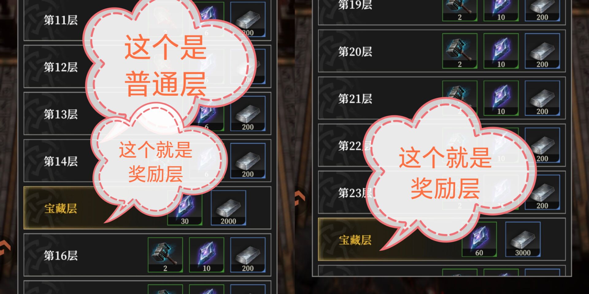 ⭐每隔几层都可以进入到【奖励层】但是后面随着层数的提升,出发奖励层也会跟着提升。