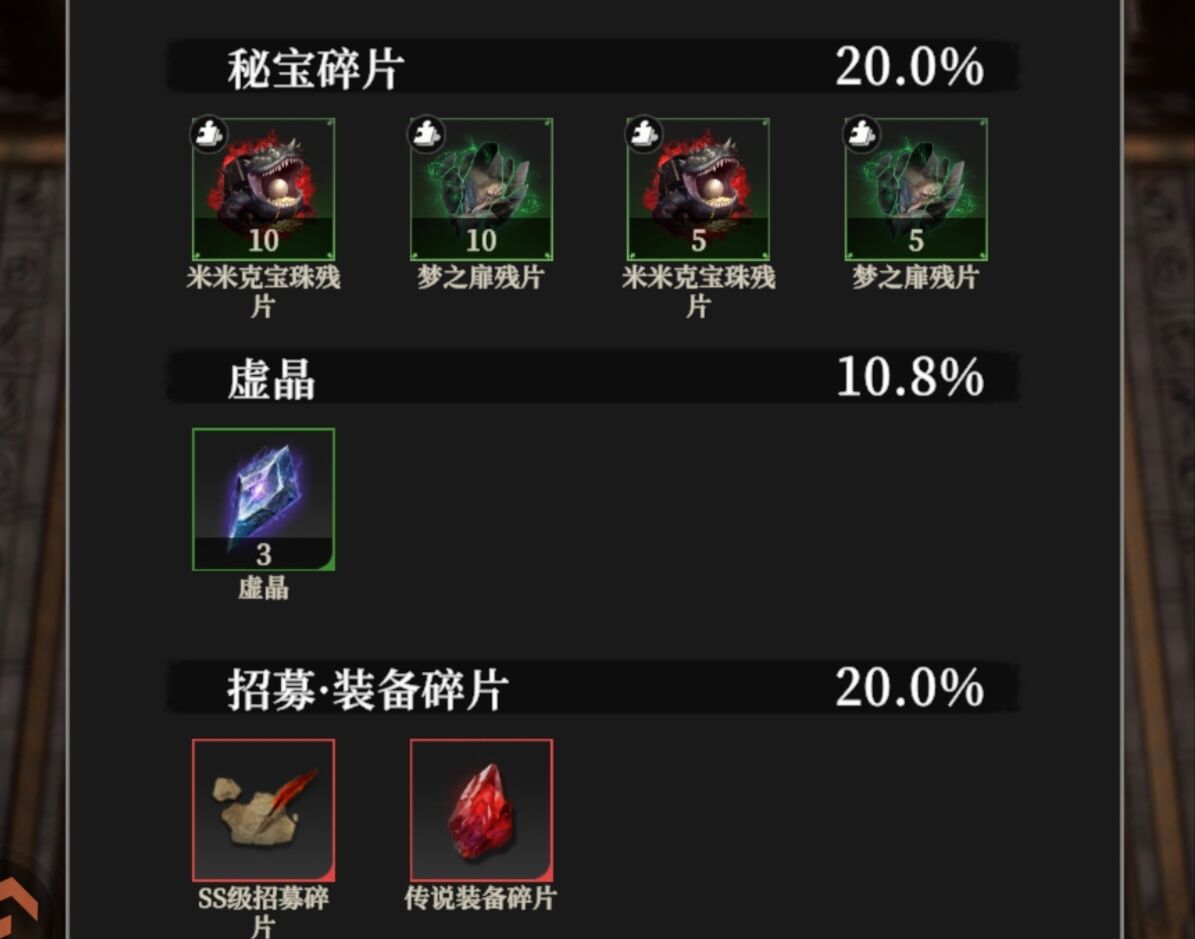 其实获得秘宝碎片、ss招募卷、传说装备碎片的概率还是很高的=20%的概率。
