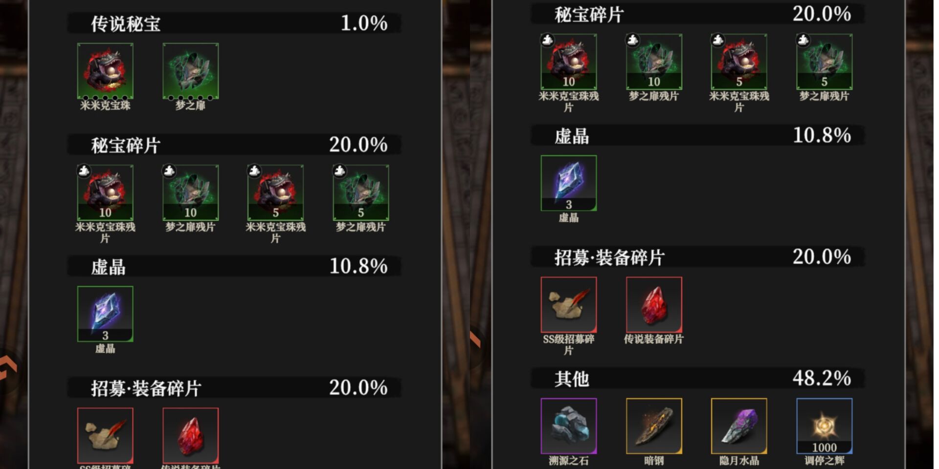 ⭐另外还有:暗钢、隐月水晶、调停之辉等奖励