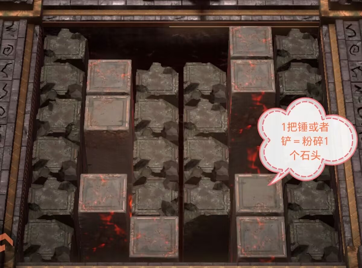 ②每1个探宝铲=粉碎1个石块。敲金锤和探宝铲的作用是一样的!