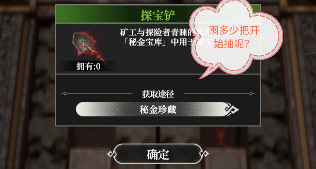 比如说:①这个活动囤多少把【探宝铲】开始抽比较合适?
