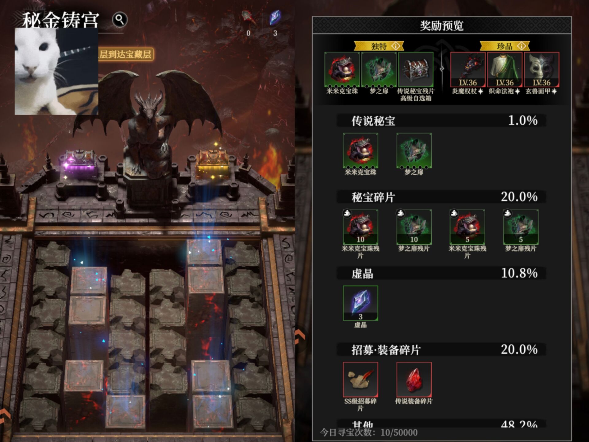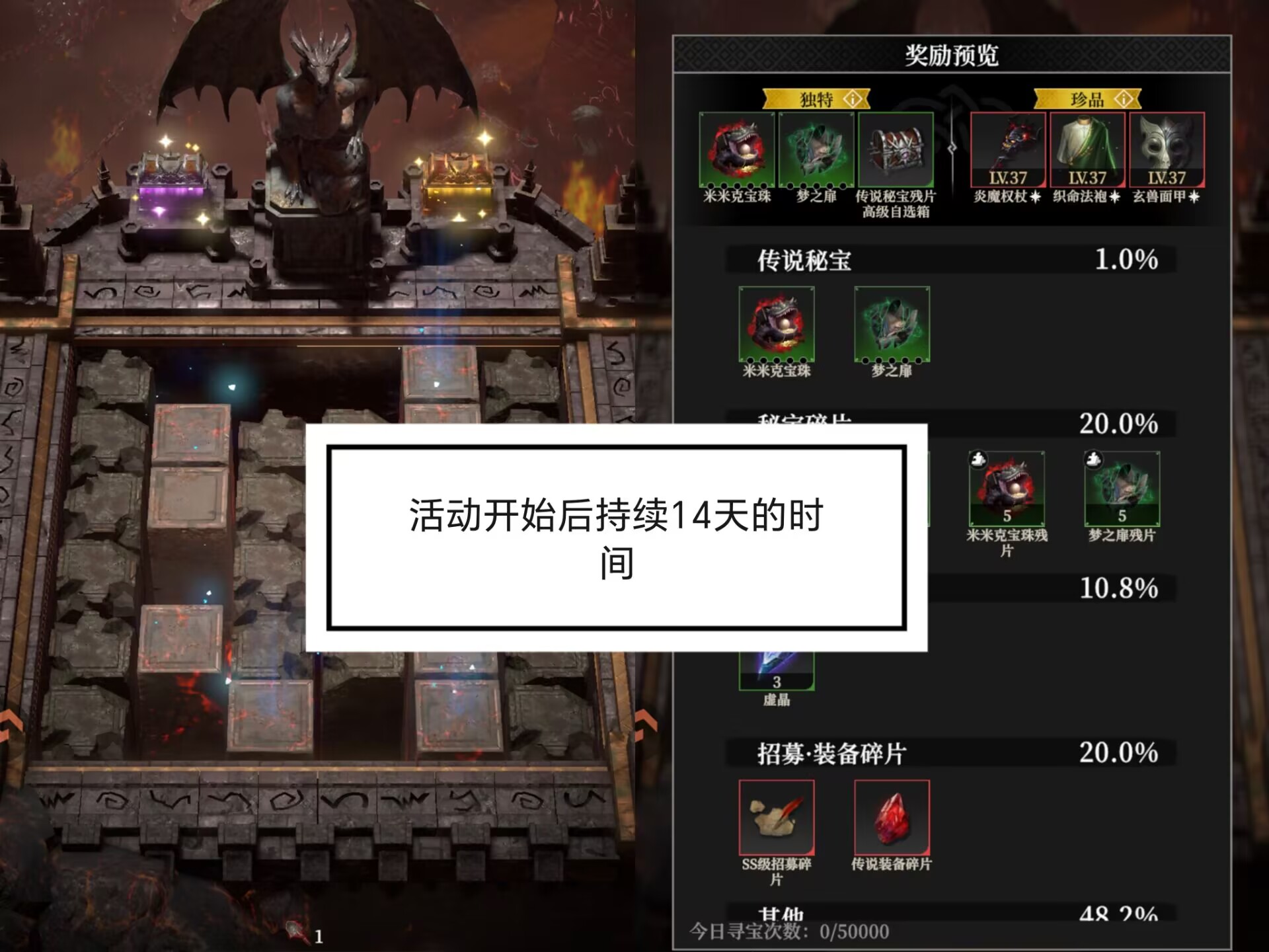 3:【秘金铸宫】的奖励主要有哪些?答:主要可以获得传:说级秘宝、虚晶、ss招募碎片、传说装备碎片等核心奖励。