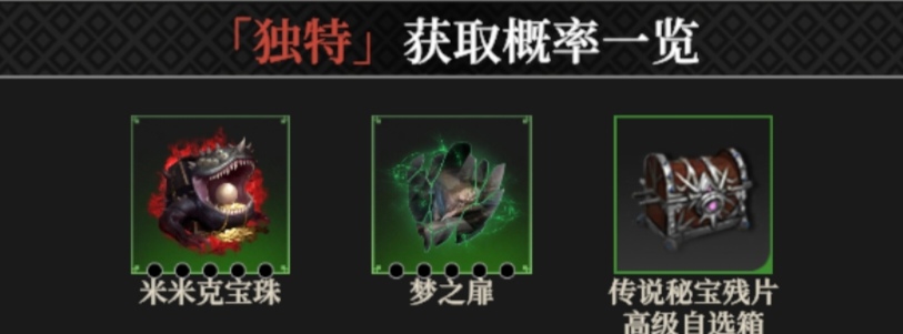 分别是:米米克宝珠、梦之扉、传说秘宝碎片自选箱。