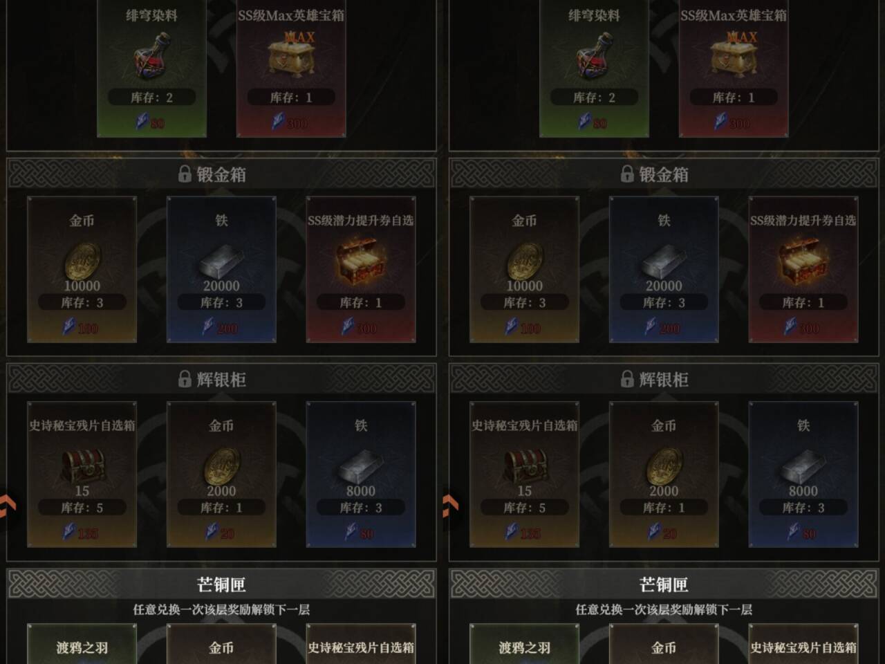 ③【辉银柜】优先兑换:铁和史诗秘宝箱子。