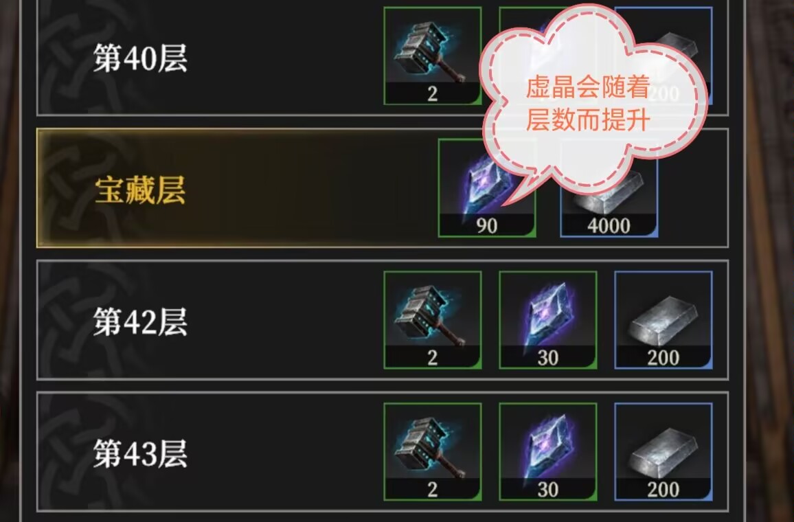⭐奖励层数越高可以获得的虚晶也就越多。