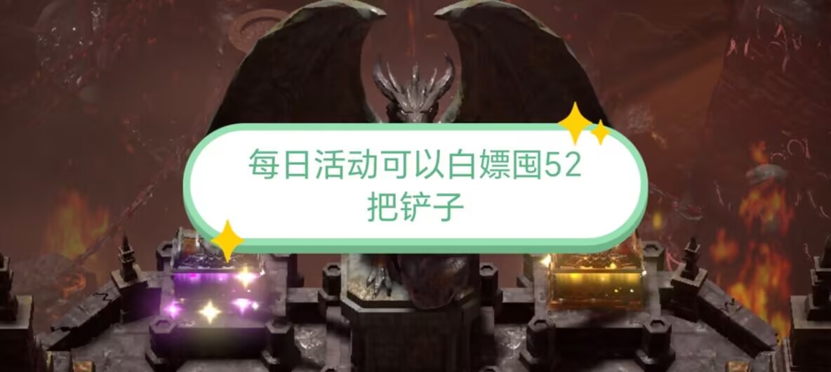 ①由上所述白嫖情况下每期一共可以囤:52把探宝铲。
