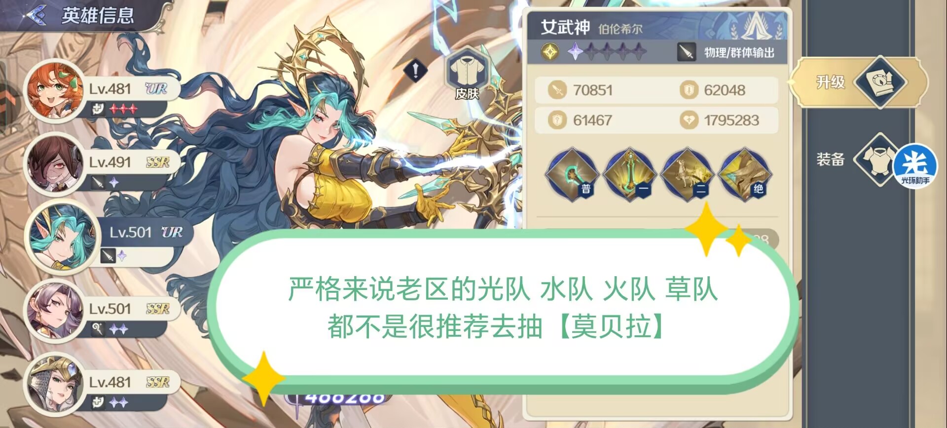 一:【老区】光队和水队建议抽:莫贝拉吗?答:严格来讲是不建议抽的,毕竟阵营体系都不同。