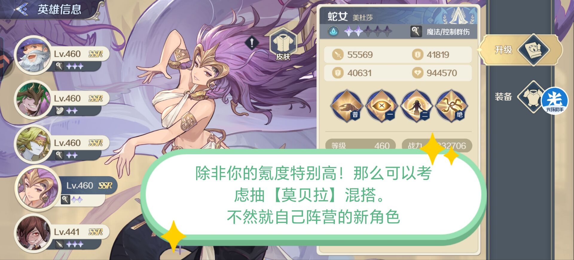 ⭐其实这三个体系都不是特别搭【莫贝拉】。如果不是顶氪玩家这些阵容的各位大佬们,还是不太建议去抽莫贝拉的。