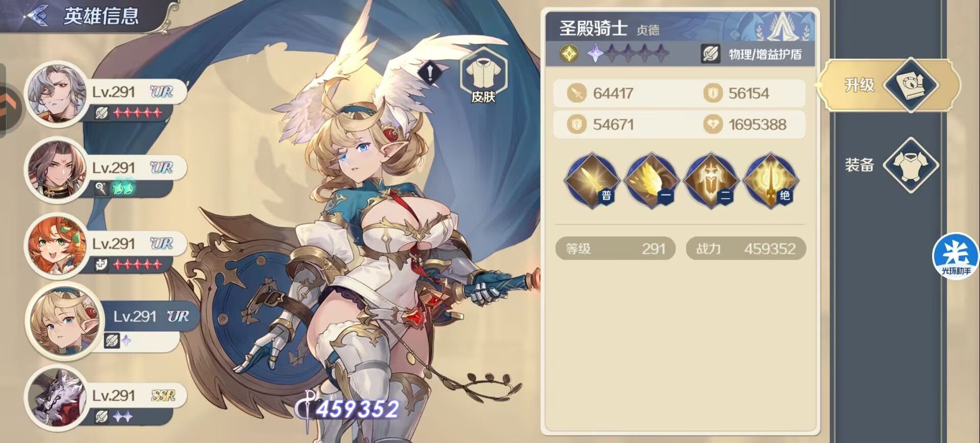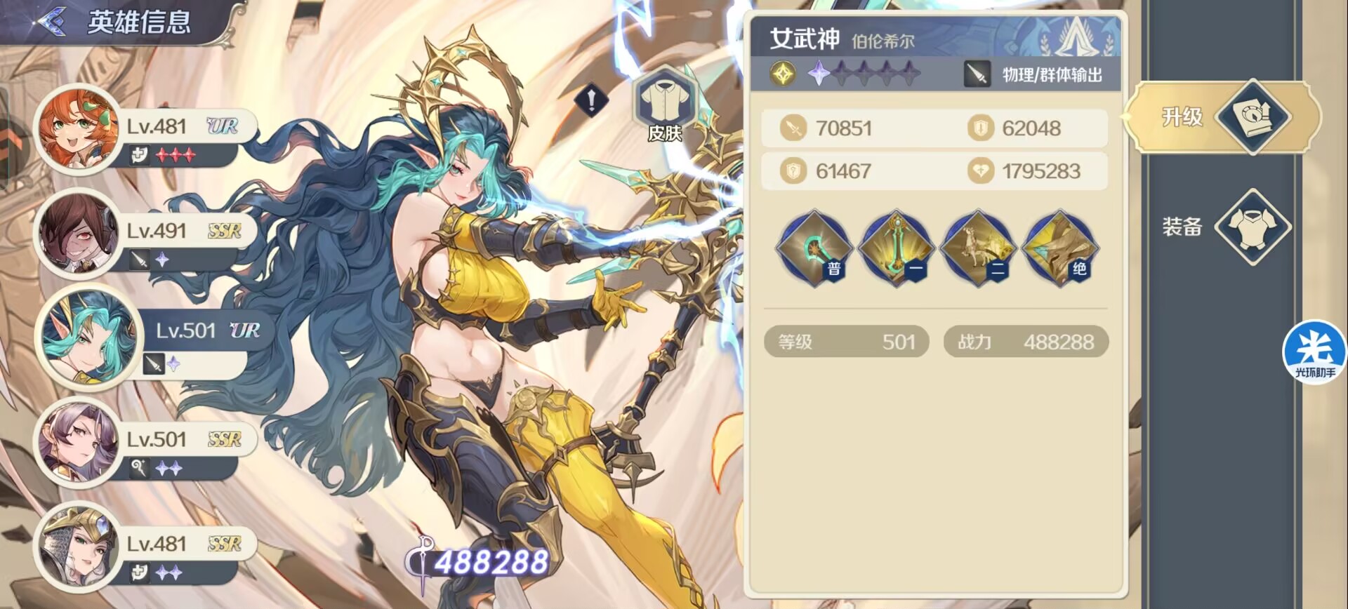 ②女武神:光队的核心大c!拥有目前游戏中最高的伤害倍率,对重伤状态下的敌人有额外的增伤,大招可以斩杀残血敌人。