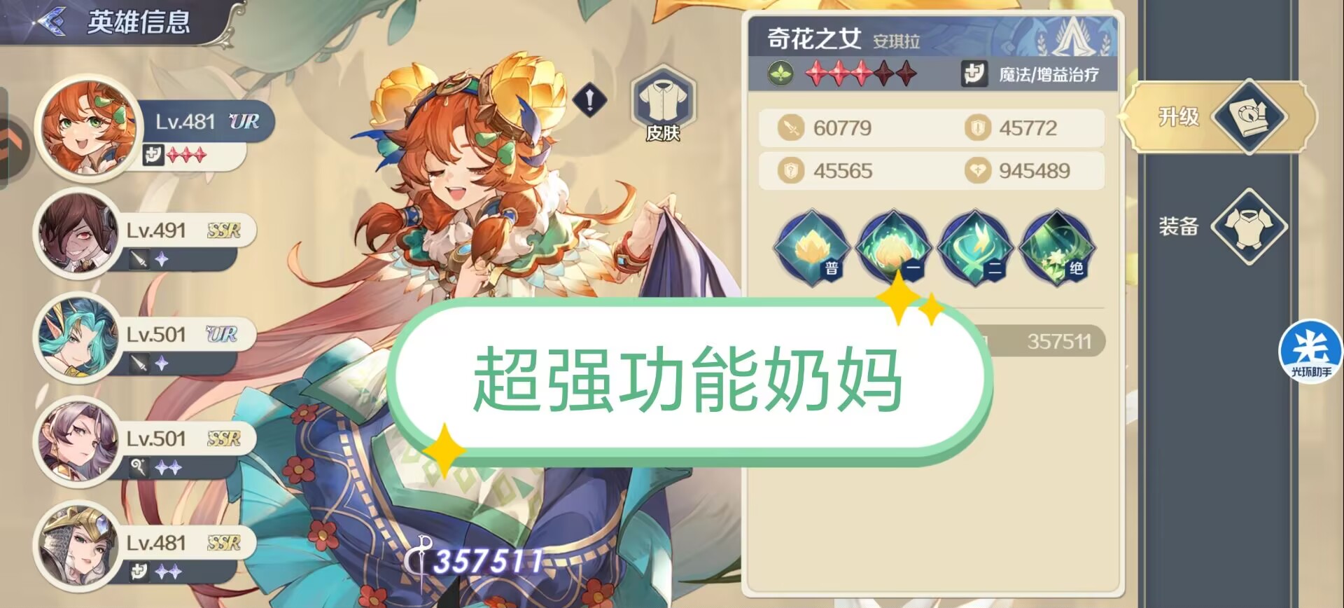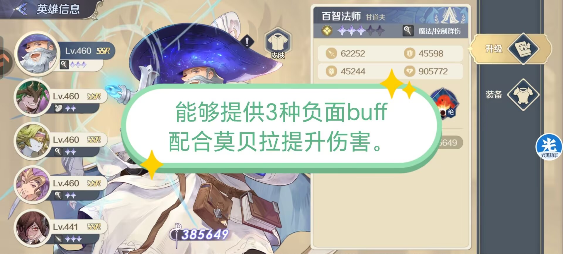 ②大智者:给全体队友加魔法伤害,提升菲琳娜和莫贝拉的法伤,进一步加强爆发输出。