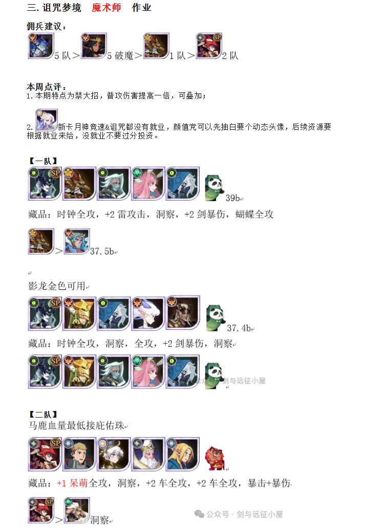 【竞速诅咒】先发作业,马鹿再就业半年,月神猎宝阵容推荐