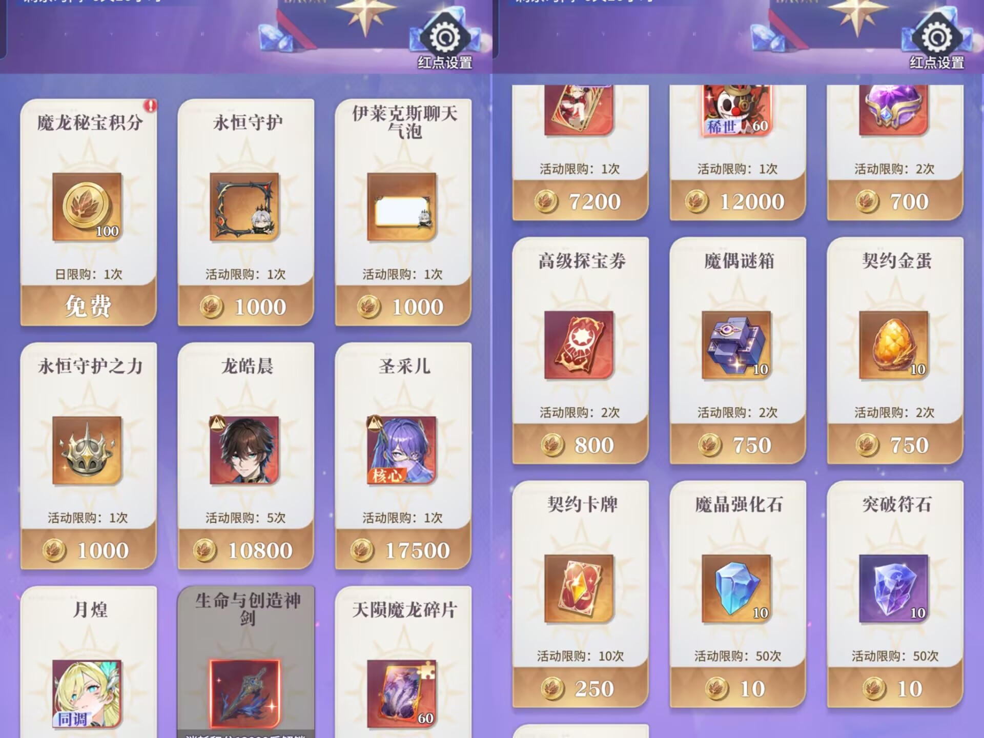 六:【魔龙秘宝】兑换推荐。这里也是主要根据自己的需求兑换即可。