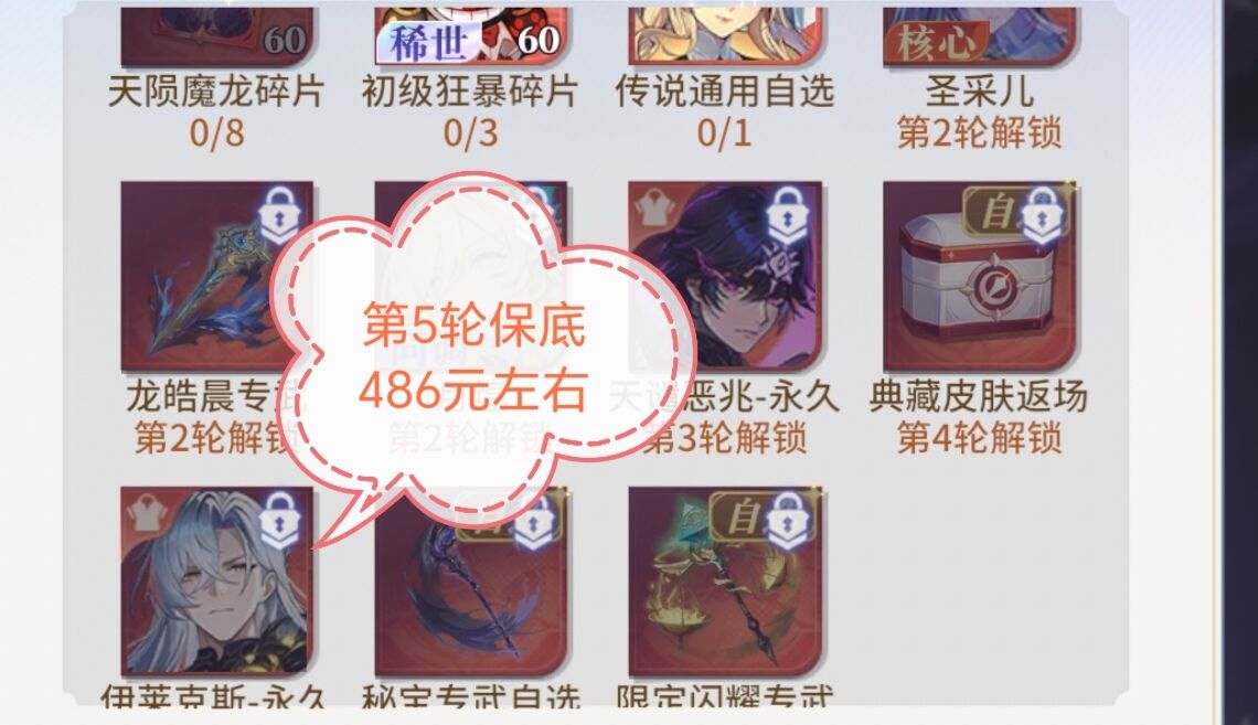 五:【魔龙秘宝】拿到第5轮洛的皮肤保底需要多少钱?