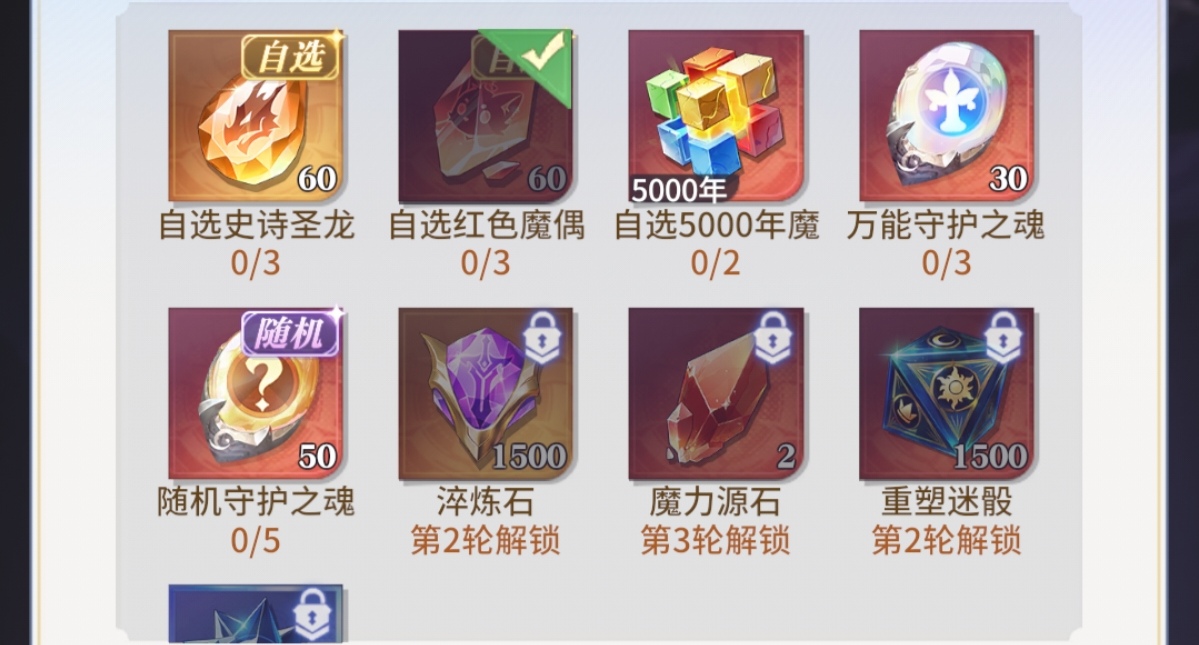 个人推荐:优先选择:自选红色魔偶、史诗圣龙。