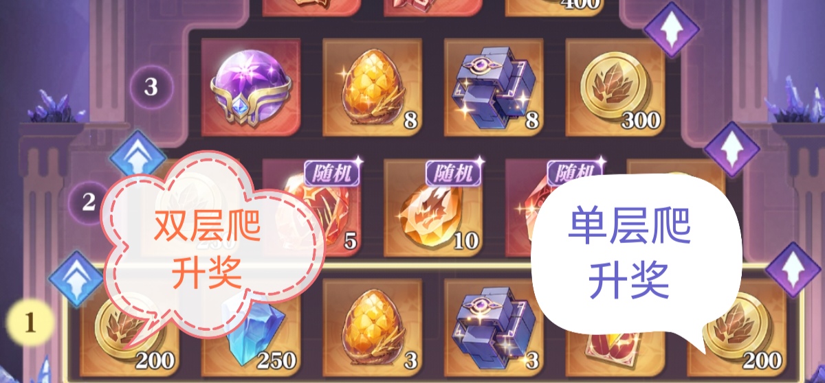 ③【爬升奖】:分为单层和双层。左边的为:双层奖(抽中可以上升2层)。