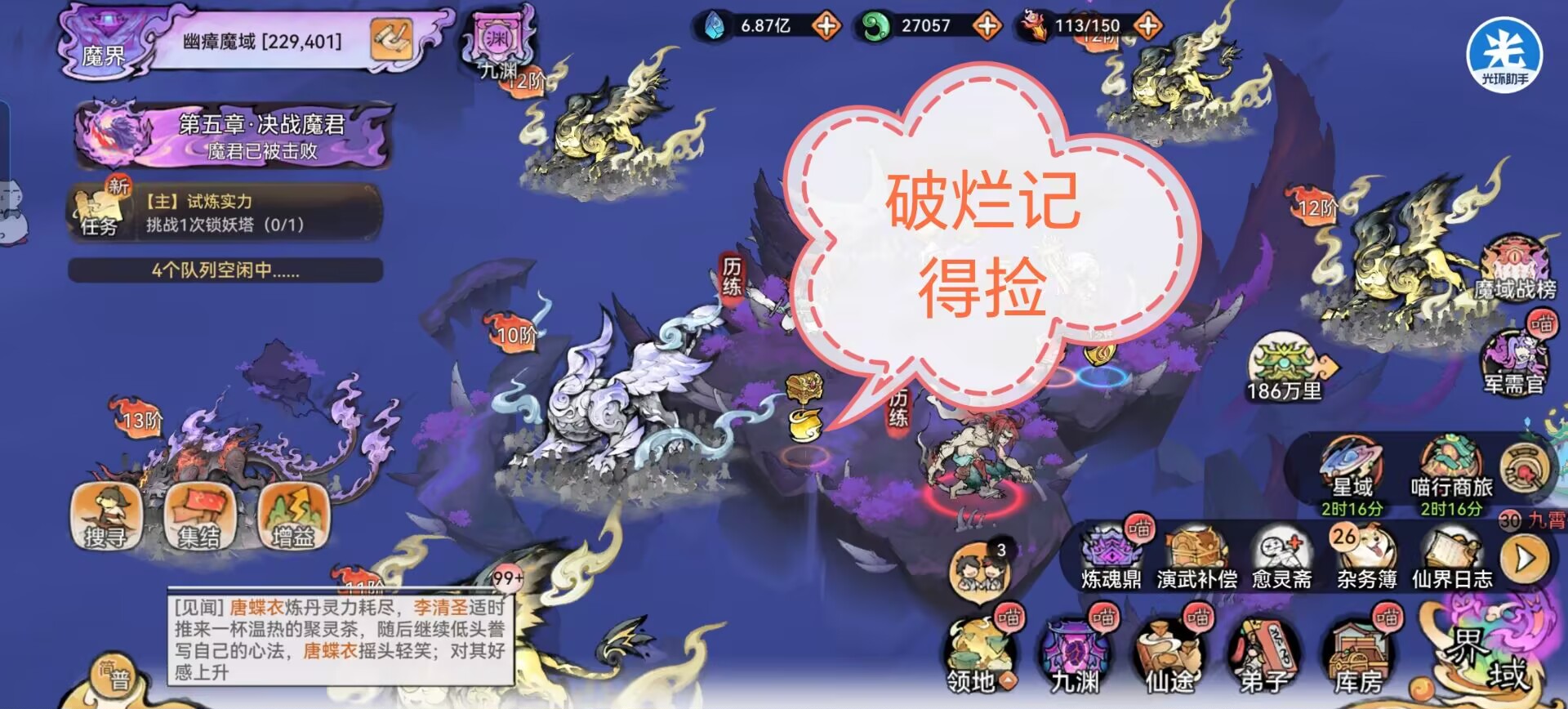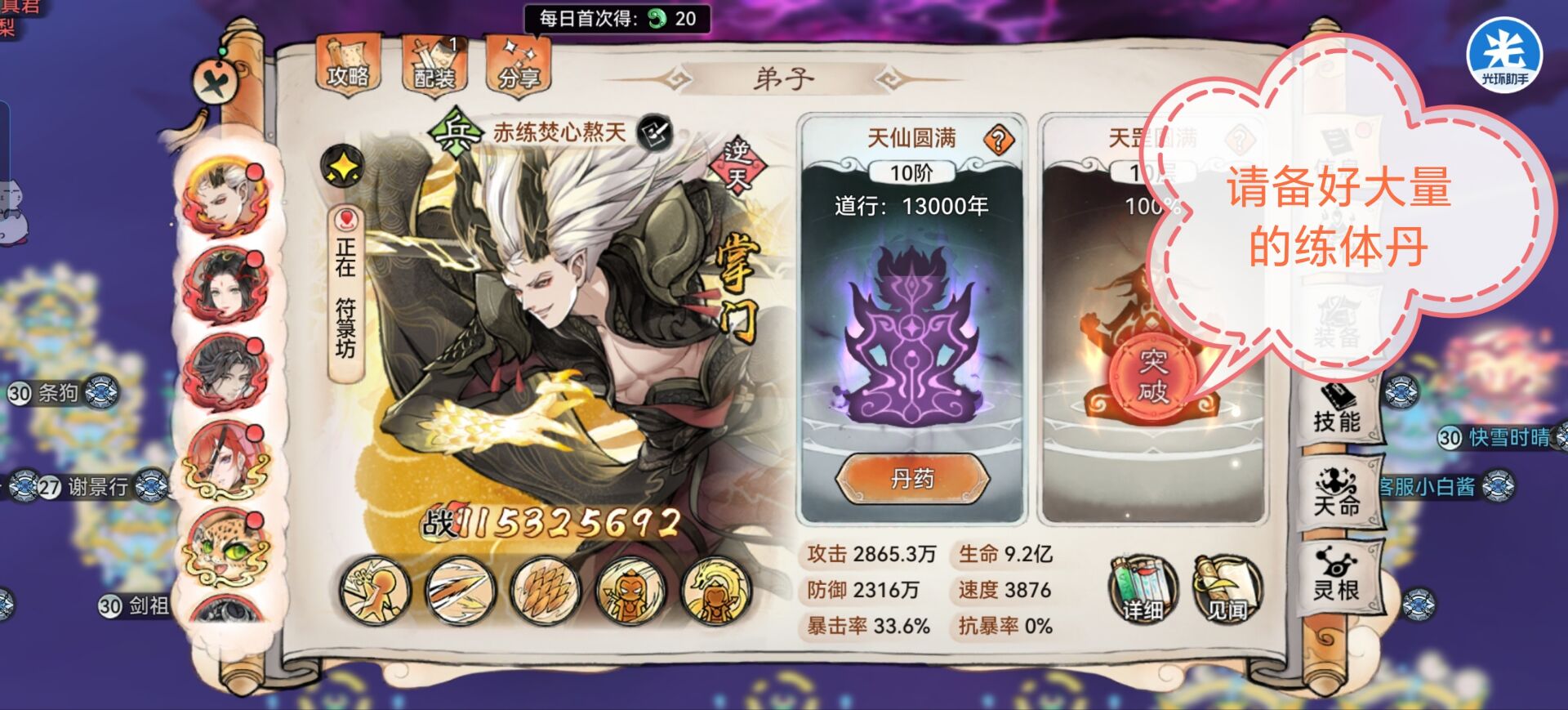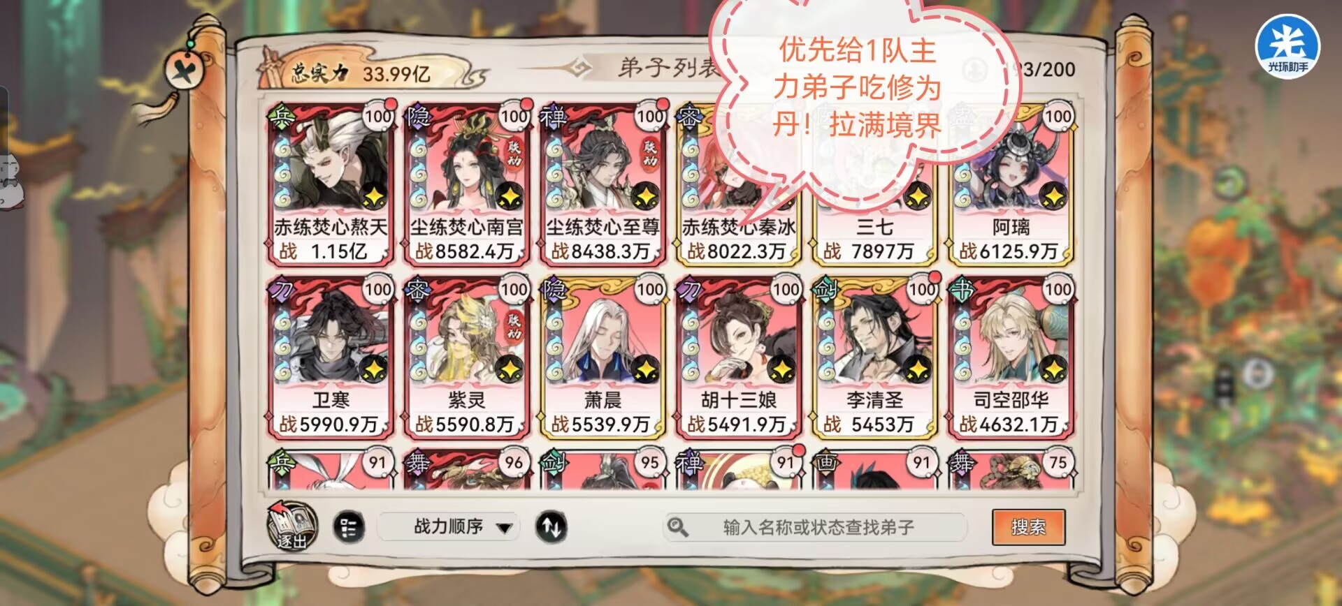 ⭐另外首先把一队主力的弟子全部突破到金仙初期以后,在优先集中拉c位。