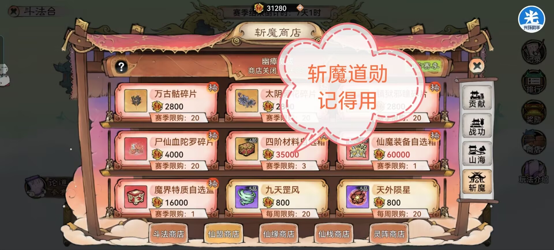①第一点:斩魔道勋是无法保留的!因此大家记得第一时间去兑换点自己想要的资源。