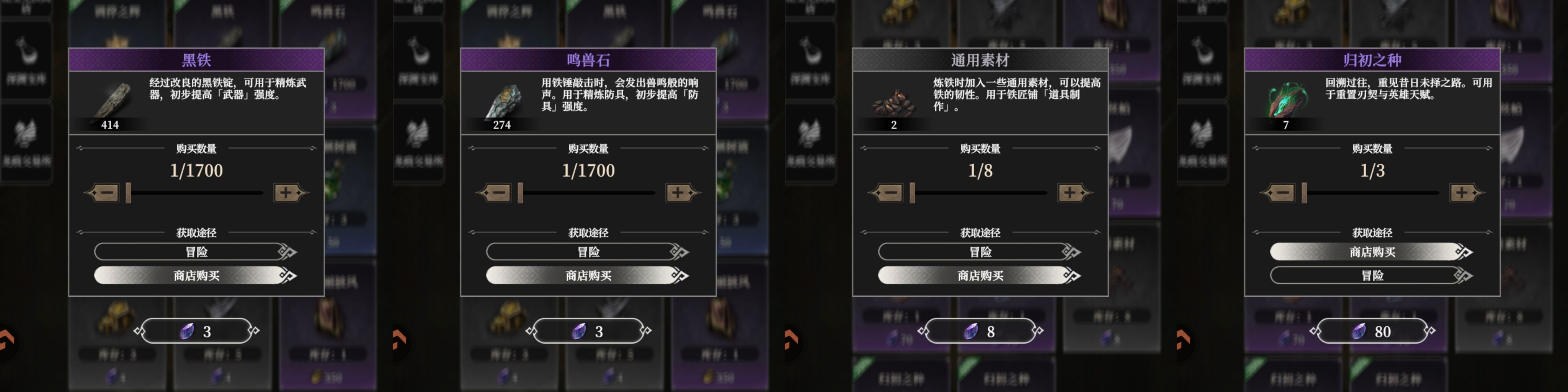 ②铁:我们锻造装备,提升装备等级核心资源必须买。