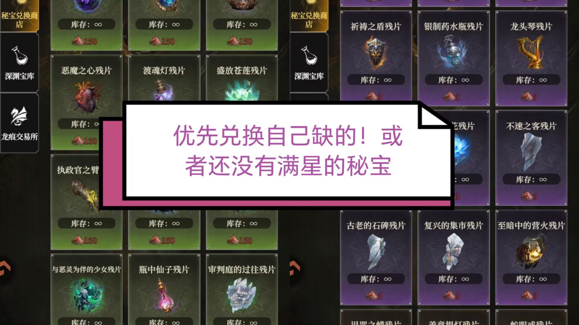 ③可以兑换所有品质的秘宝优先推荐兑换:传说秘宝、其次史诗、最后是稀有秘宝。