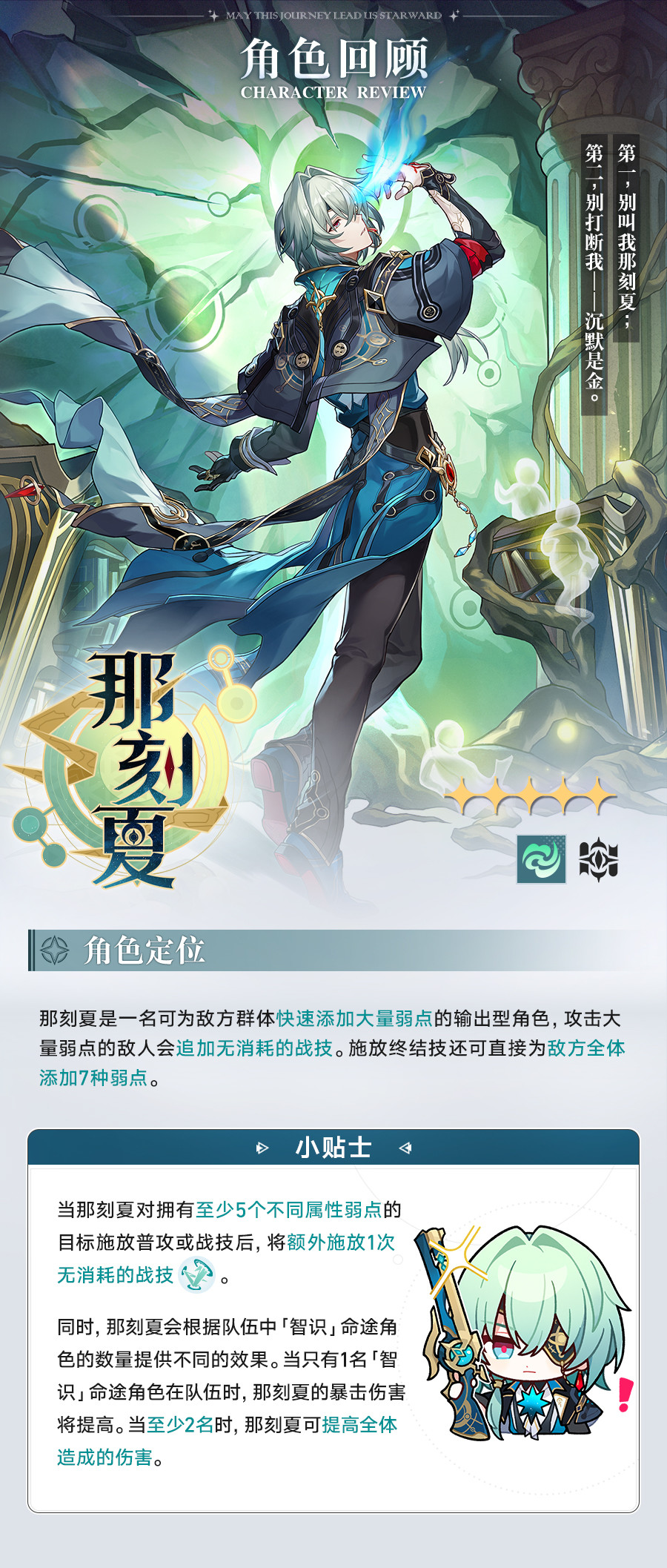 开拓者好呀~「那刻夏(智识•风)」马上就要返场了帕!快和帕姆一起来看看帕!