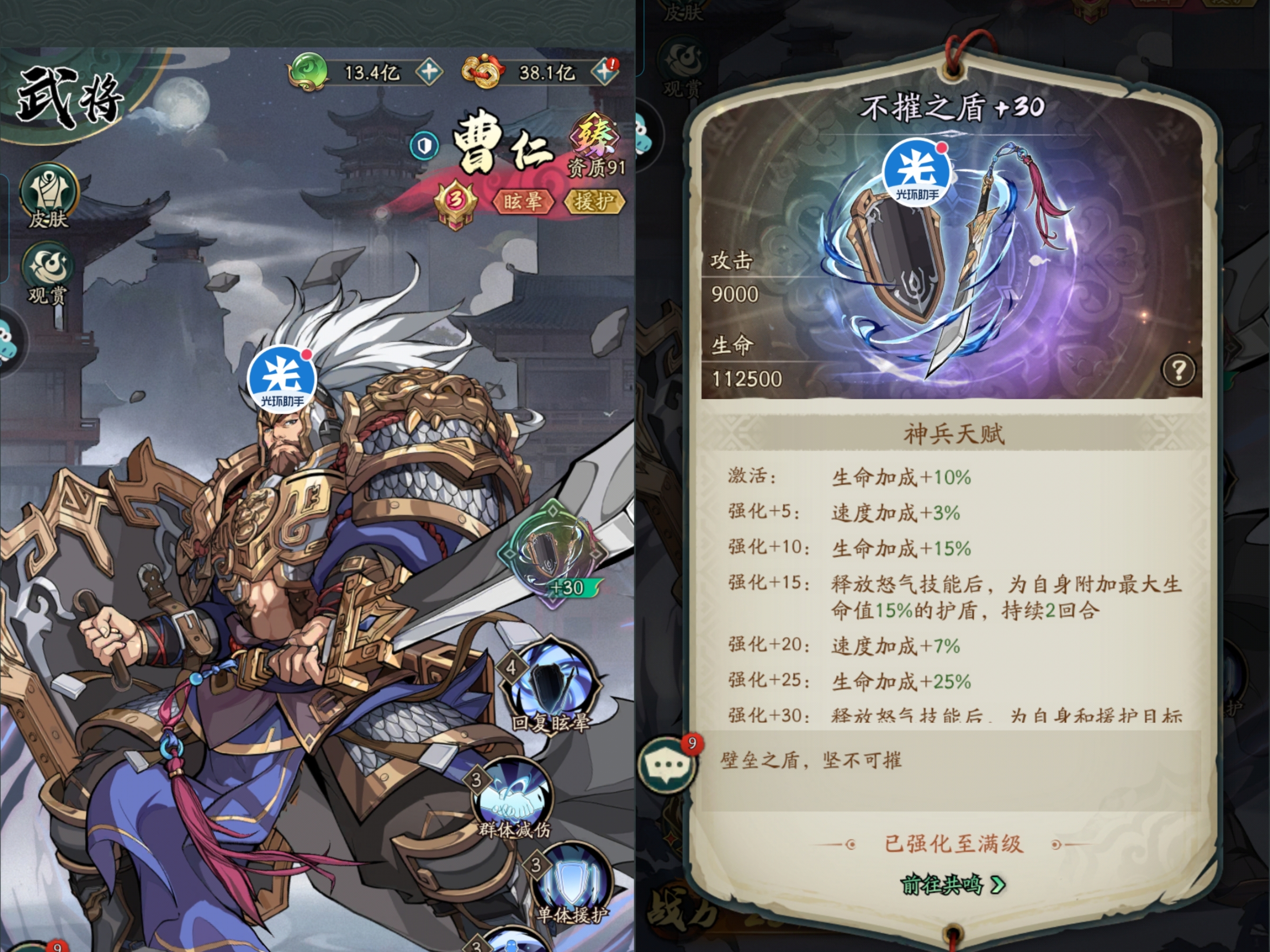 解析:能够给全体队友回血+减伤,还可以给主c副c加护盾!功能性作用于都非常不错的三国武将,也是很推荐大家前期去培养的武将。