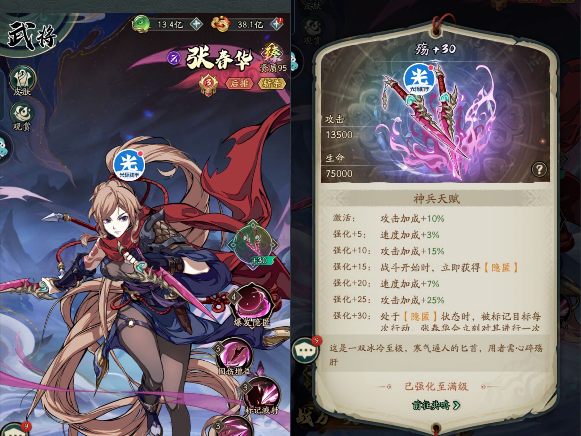 解析:张春华强度和伤害其实是有的,能够优先锁定残血目标打收割,而且还有固伤和溅射伤害,激活3红藏以后很强大,但是其实需要高练度才有用,伤害才高!而且需要保护,有马云禄的话输出环境会改善很多,适合有一定氪度的玩家,不太适合平民玩家去培养。