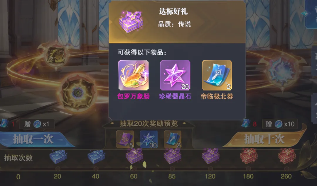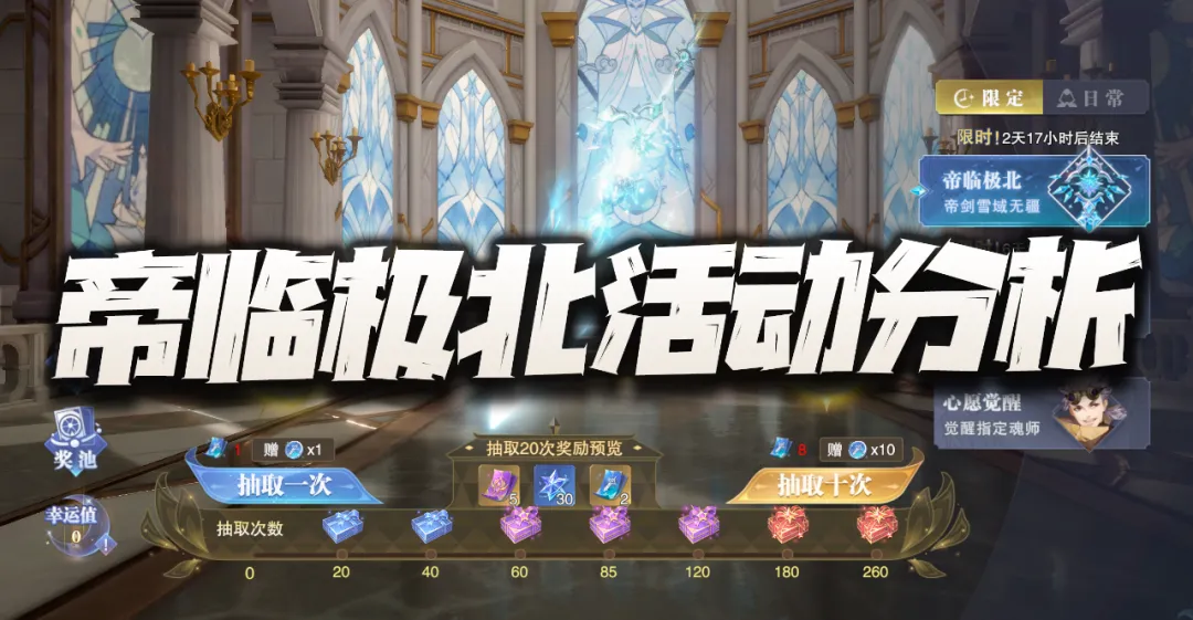 基础每日88钻石/抽,限购5抽,此部分每天最多可消耗440钻石获取5抽,3天时间就是最多消耗1320钻石获取15抽 每日6、12、30、68元礼包获取,此部分最多每日可花费116元获取23抽,3天时间就是最多花费348元获取69抽 活动限购RMB礼包获取 每日分别购买完6、12、30元三个礼包后还可以对应解锁至多3次的108钻石/5抽礼包,相当于此部分每日需要花费最高48元的门槛,然后可以再最多消耗1620钻石获取15抽,3天时间便是最多消耗4860钻石获取45抽,但前提得先搭上144元...... 累抽返赠,此部分最多可以通过累抽260次返赠18抽