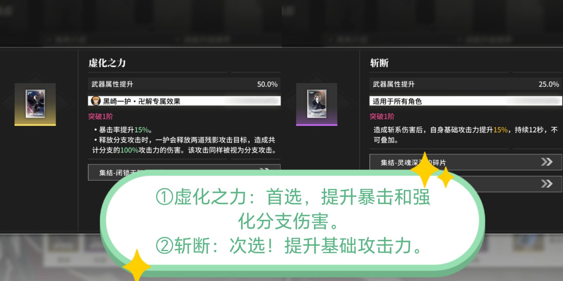 解析:虚化之力:能够提升暴击率,同时可以强化一护分支攻击的伤害,大幅度提升一护的伤害