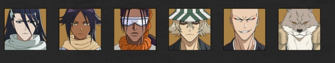 ④夜一。⑤斑目一角。⑥朽木白哉。