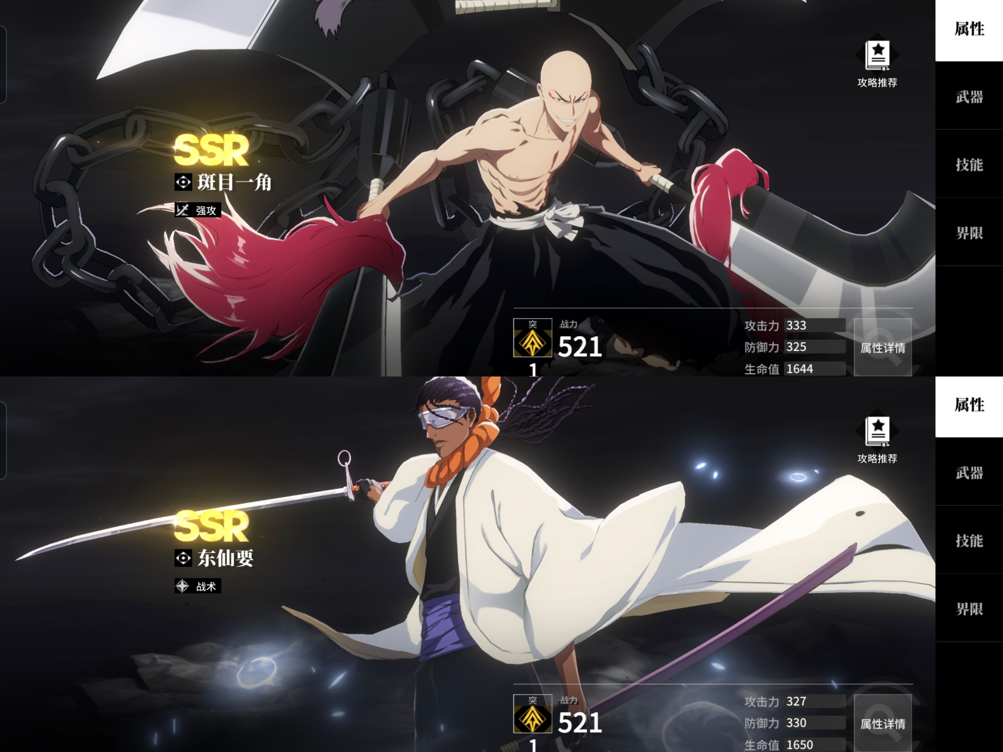 ②狛村左阵:能抗又能打的同时支援能力极强的角色,战场技可以提升所有打系角色的伤害,同时可以给队友提供护盾保护,并且技能可以大幅度降低敌人的打系抗性,同时可以配合队友进行协同攻击,自身也有一定的输出能力,是打系阵容必不可少的核心人物。