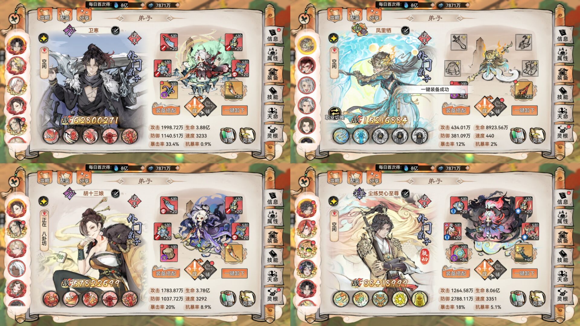 当然也有少数玩家用韩立去当输出的,狮子发现这类玩家的韩立打8-11阶仙墟也有不错的伤害表现,但是肯定没有卫寒好使。