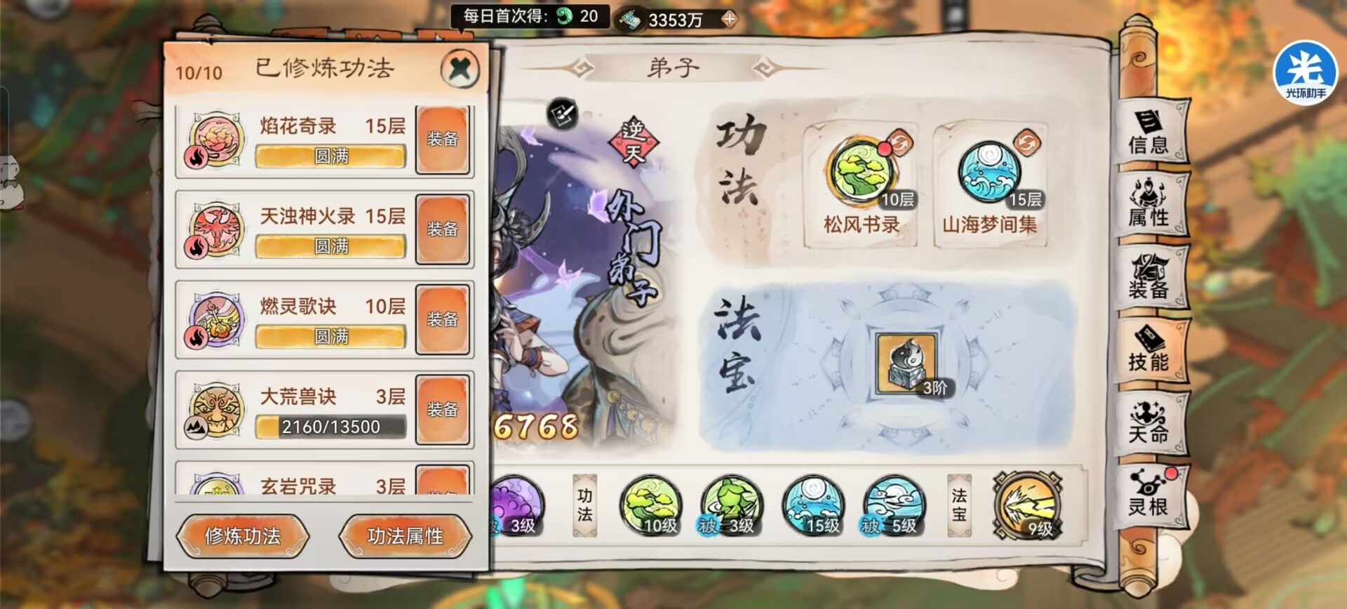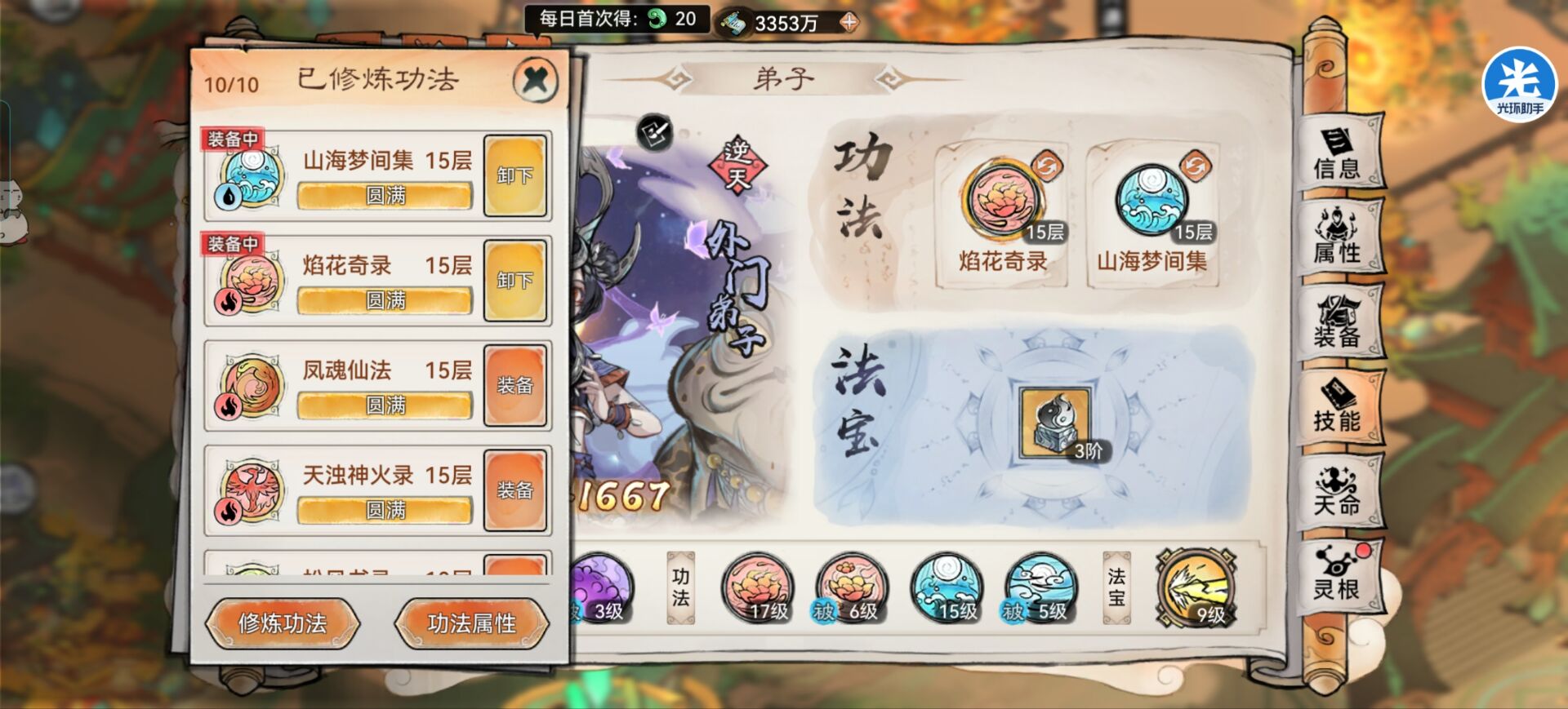 1:功法推荐:山海+松风书录。