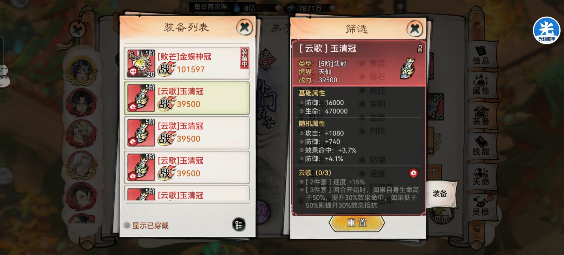 但是这个增伤思路需要阿璃特别高的命中,如果是打14阶15阶仙墟,需要阿璃300的命中。
