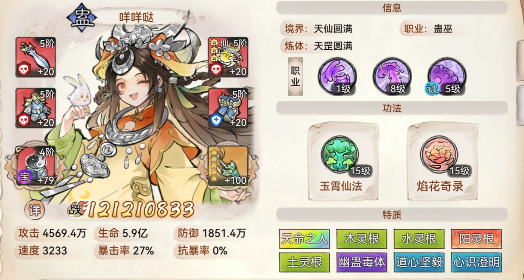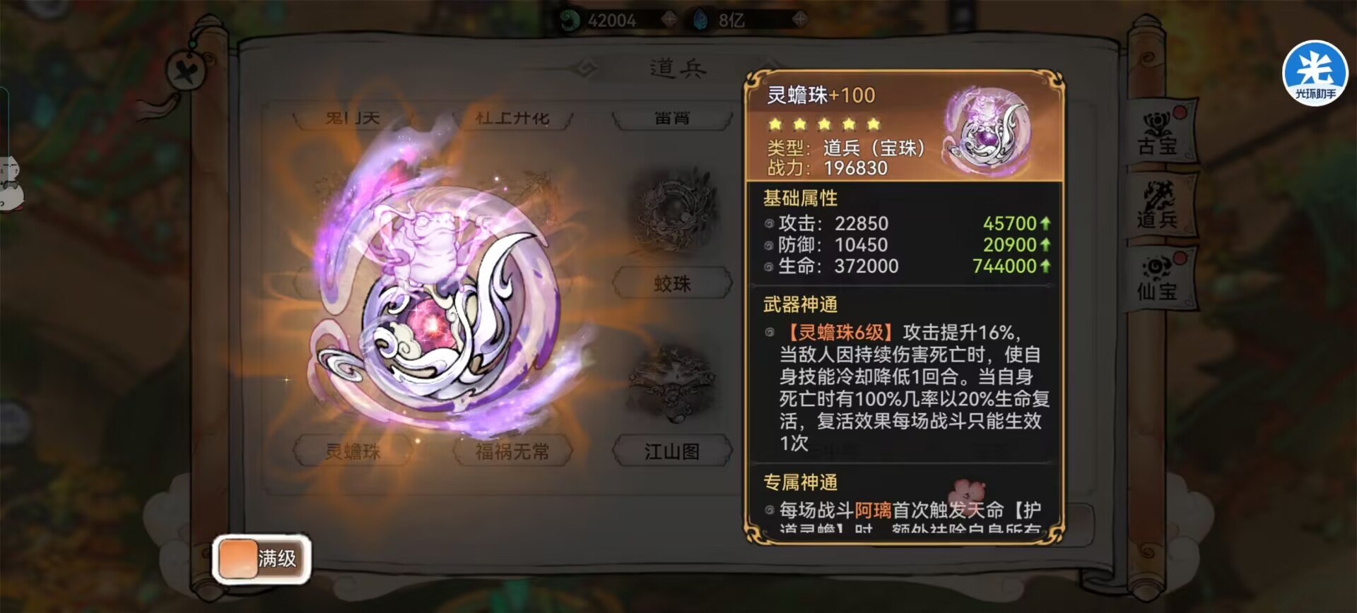 首先阿璃本身的生存机制极强!蟾蜍替死自带2条命,如果加上二阶《木法宝》复活效果!以及专属道兵《灵蟾珠》复活效果,阿璃的生存可以说是直接拉满了,游戏中最坚韧的角色。