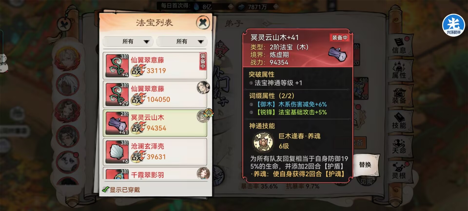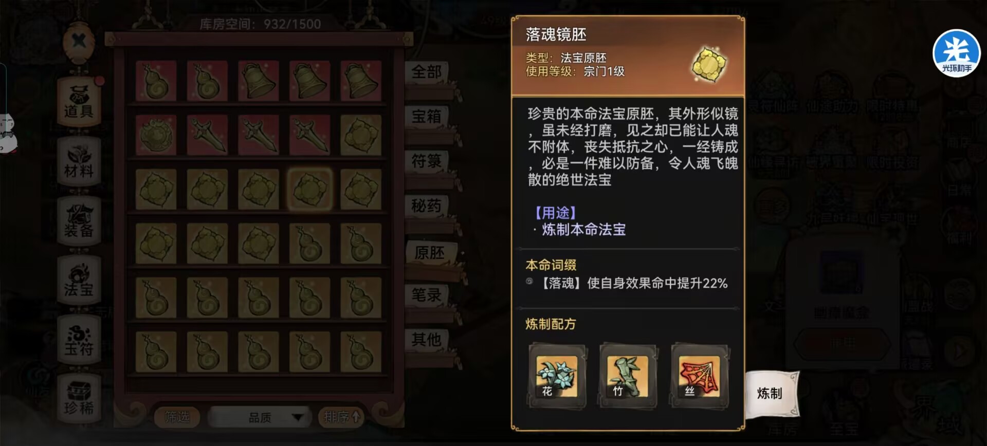 5:本命法宝推荐:落魂镜(提升阿璃的命中)