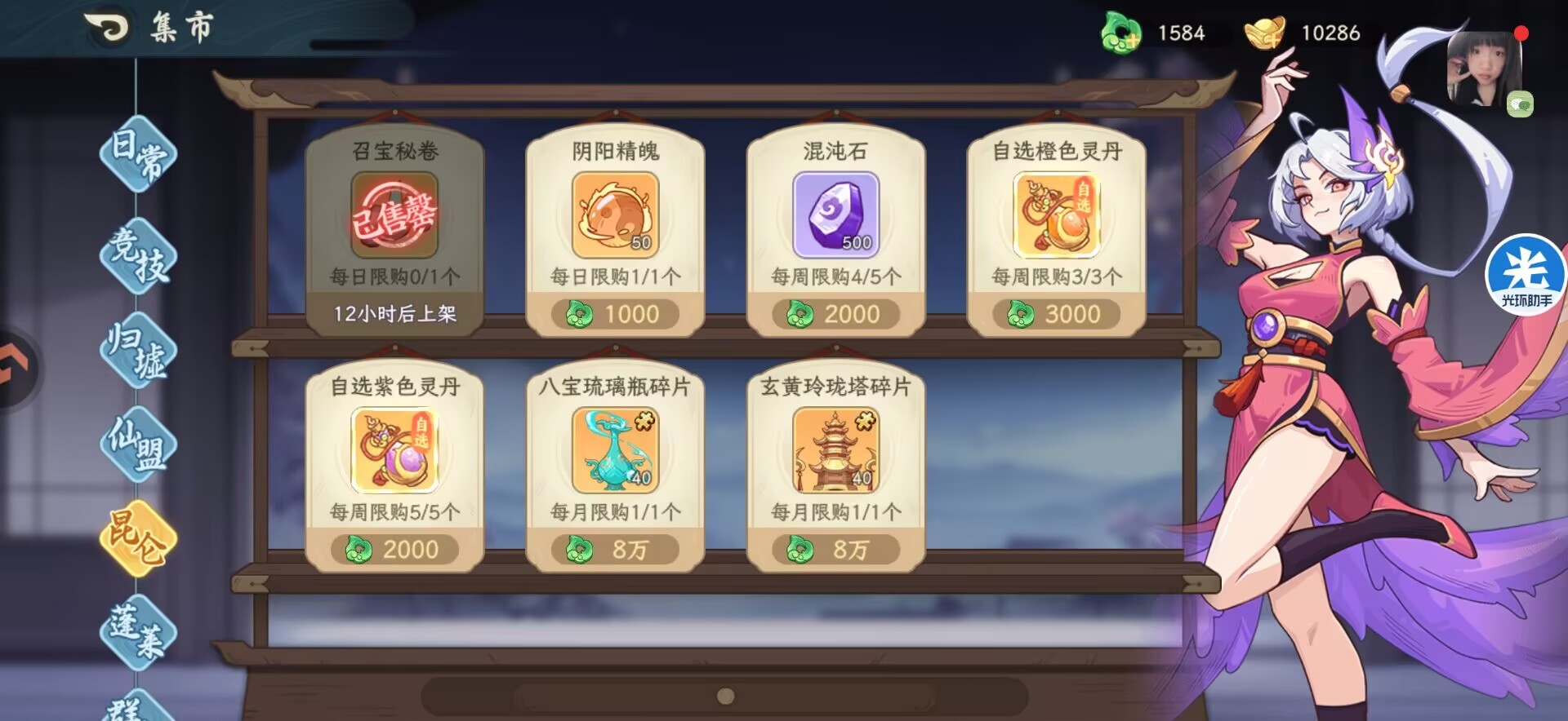 比如说:缺阴阳精魄升古宝的时候可以买。