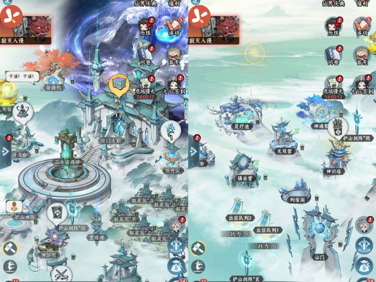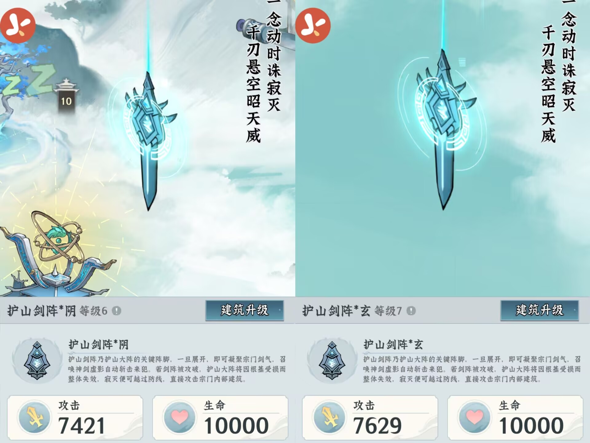 ②作用:护山剑阵的主要作用就是抵御【寂灭入侵】时候可以协助我们弟子攻击敌人,等级越高的剑阵伤害和生命也越高,因此也是我们重点升级的建筑。