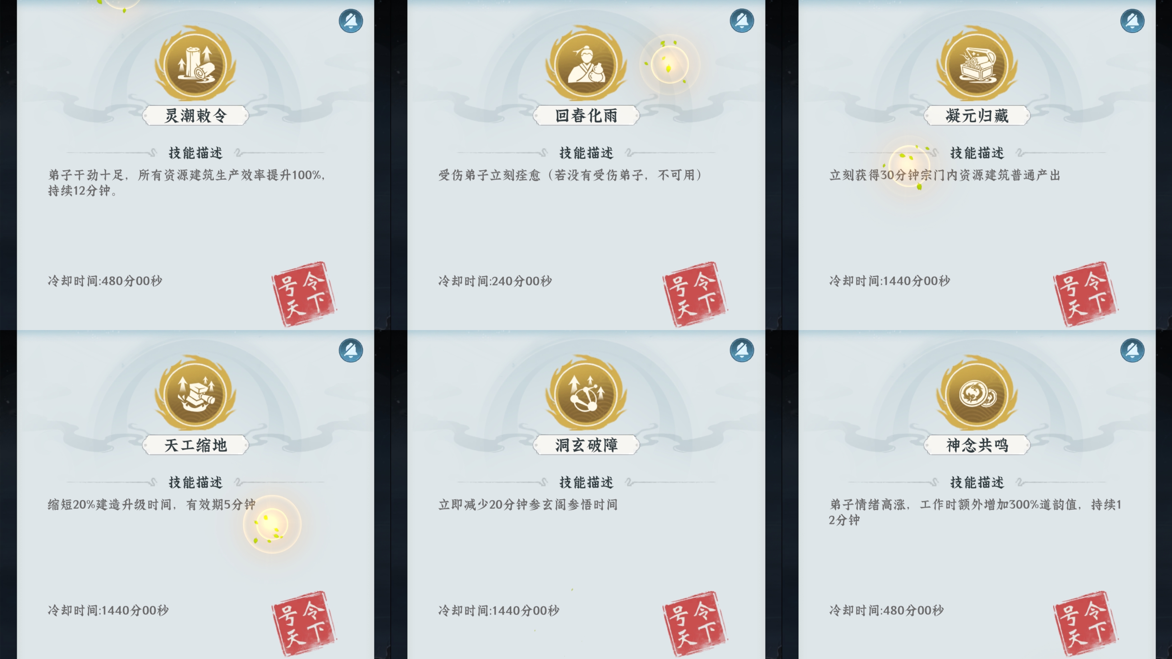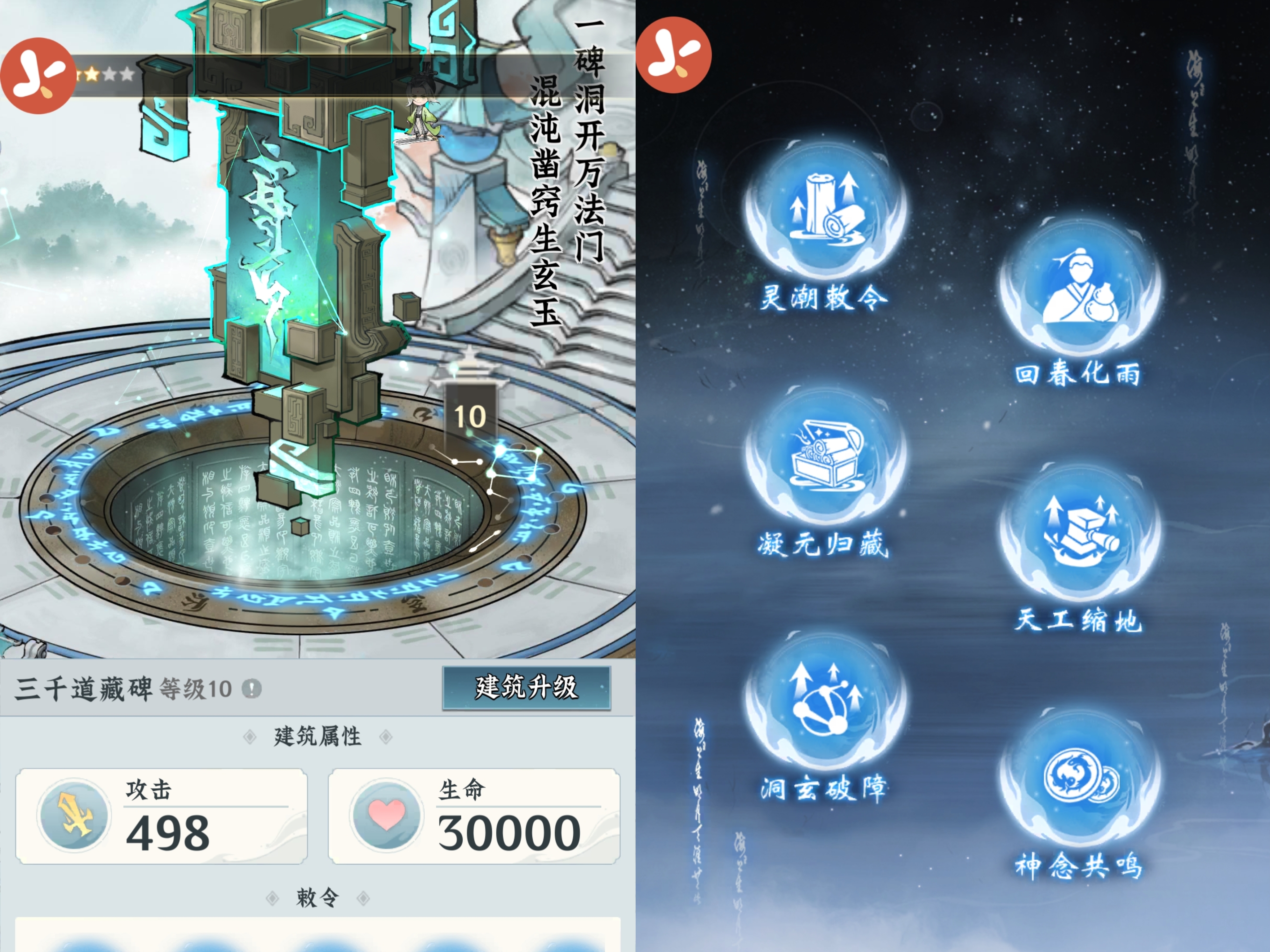 ③此外三千道藏碑可以使用六种专属技能提升宗门的产出或者是恢复弟子的强势。