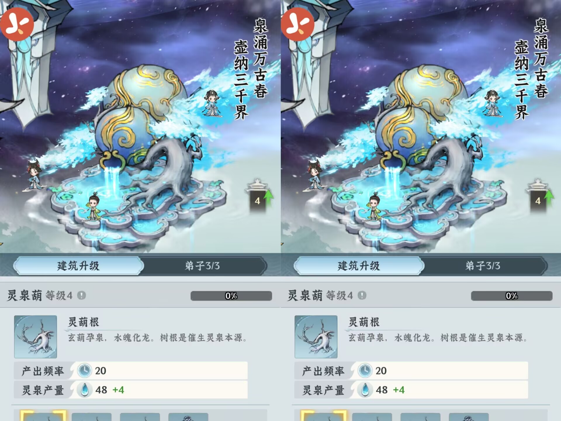 ②作用:主要就是产出灵泉,等级越高灵泉产出的频率和产量也就越多。