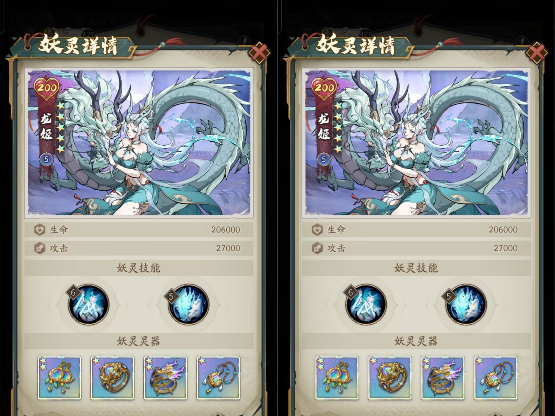 解析:龙姬虽然是最早的妖灵,其实早就该被淘汰,不过龙姬核心优点在于可以提升速度。可以提升5%速度!这对于氪金大佬卷速度的来说很关键!如果你要卷速度,那么龙姬也是可以优先抽到红1星的。