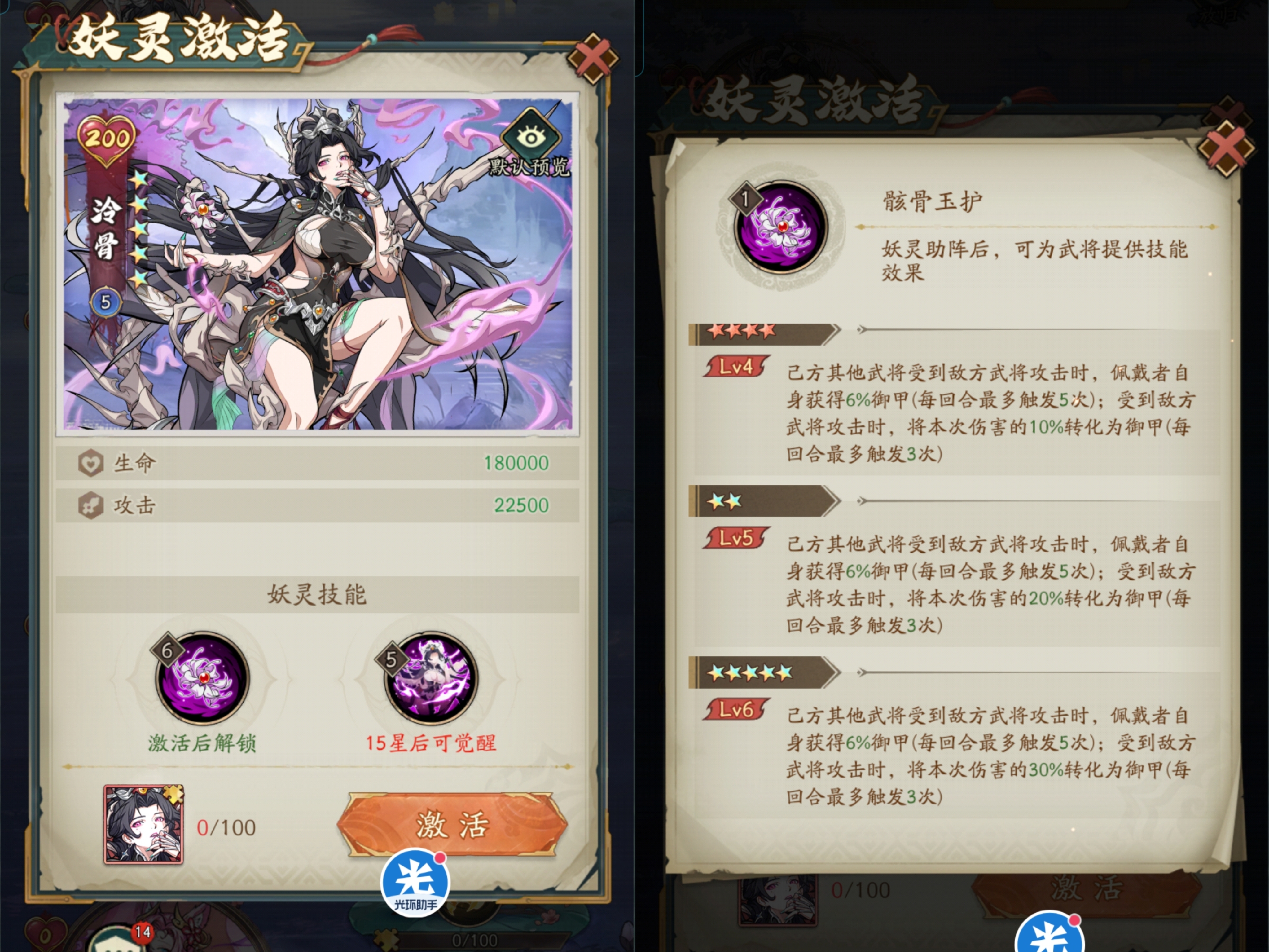 ①泠骨:目前版本最强的提升阵容肉的妖灵,高频的套御甲和伤害转御甲,绝对是可以提升拉长自己战斗的回合数的,而且这个机制狮子认为未来也不会失业!所以也是可以做的。