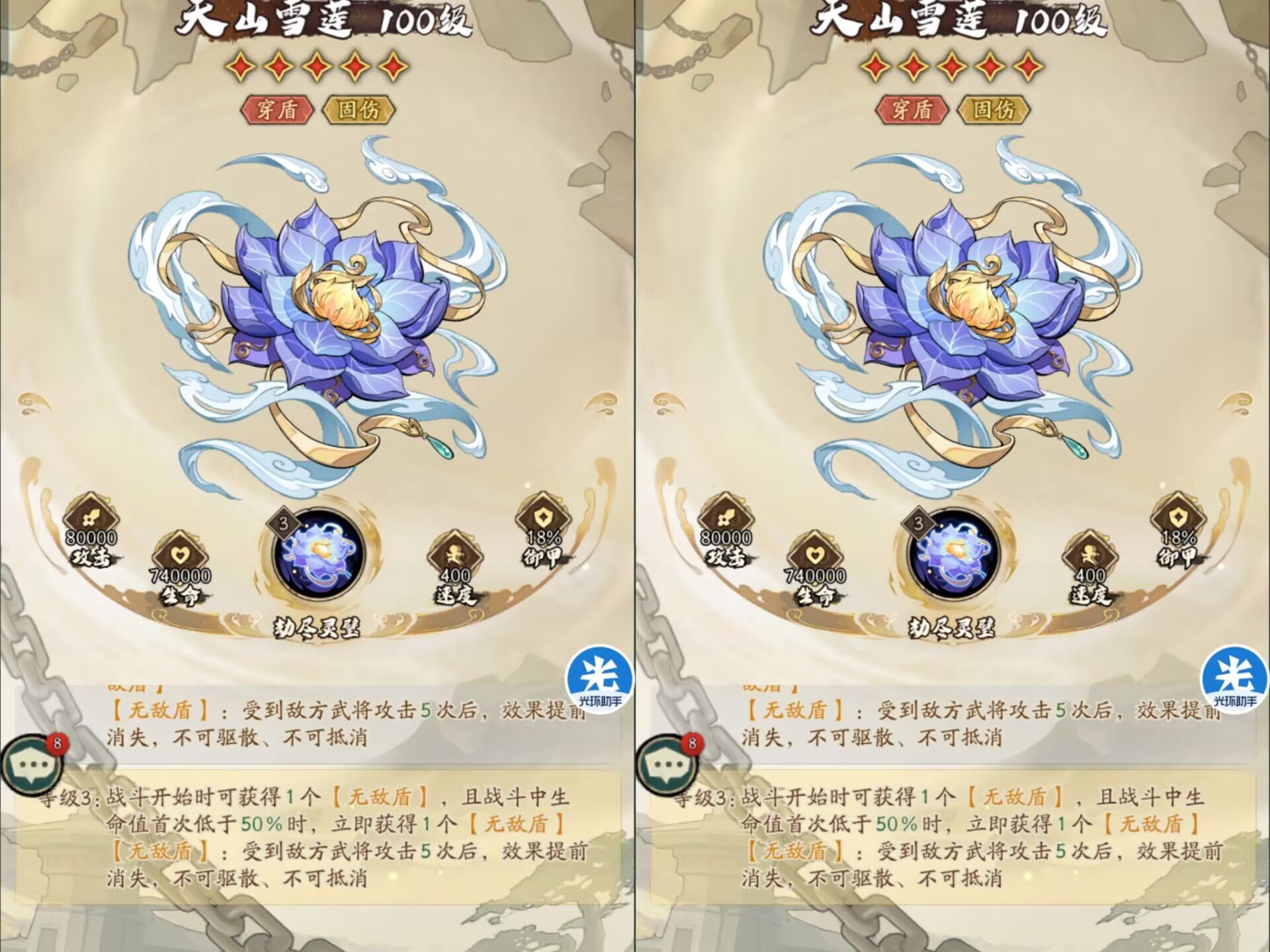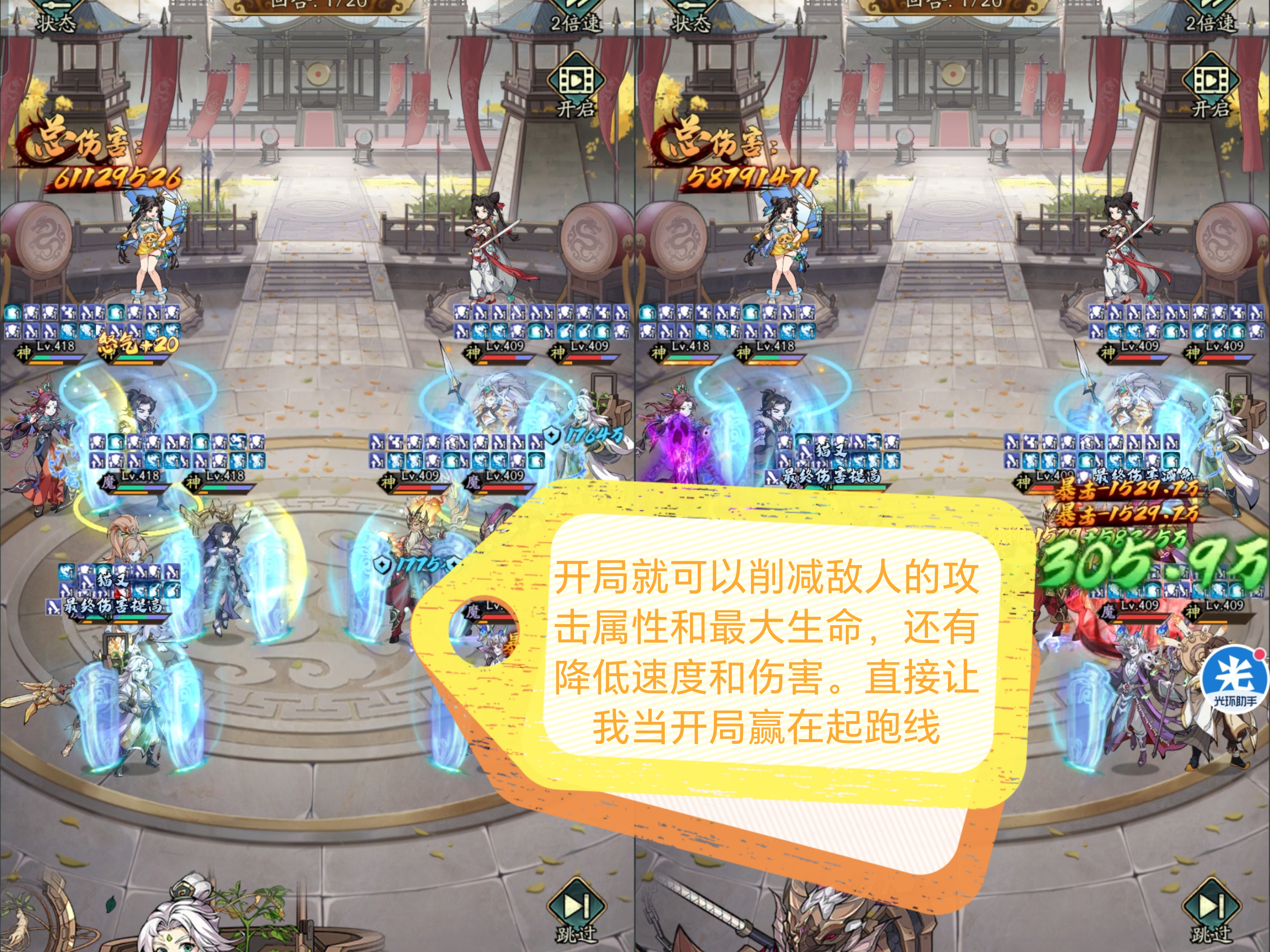 ③另外一个核心机制在于3星以后解锁:开局就可以降低敌人全体的速度和最终伤害,满星的情况下最大可以降低敌人全体8%速度和20%最终伤害。
